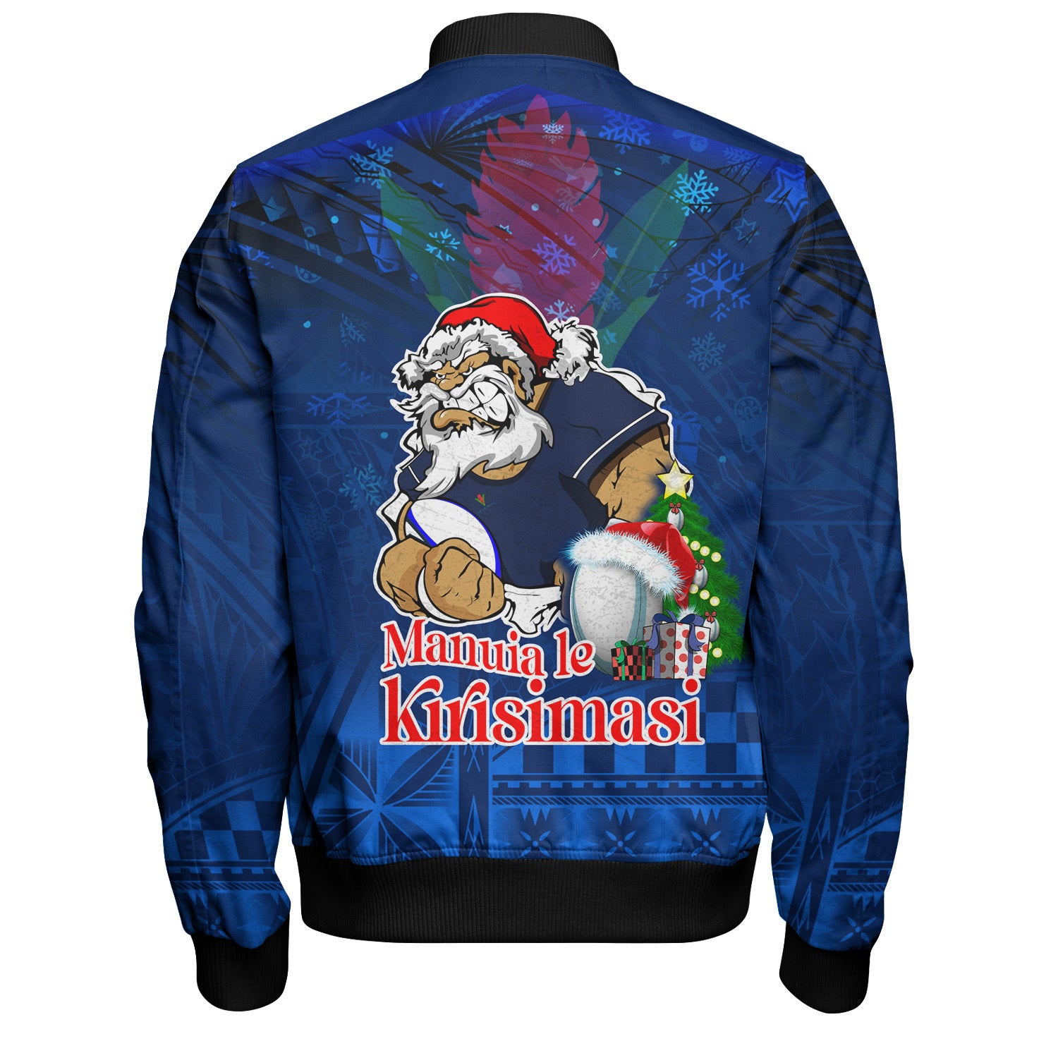 Samoa Bomber Jacket Manuia Le Kirisimasi Rugby Santa Style