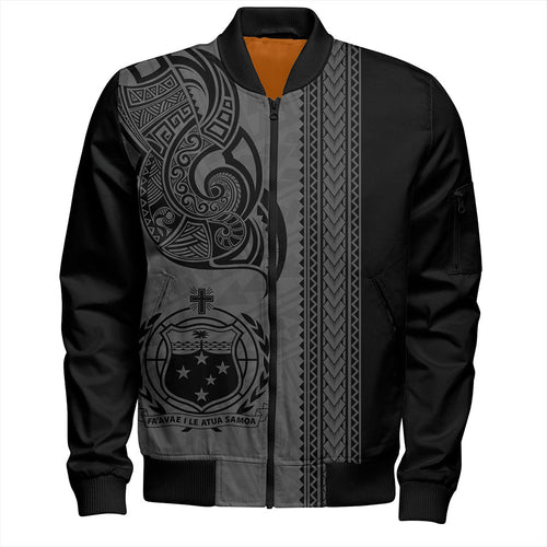 Samoa Bomber Jacket Polynesia Tribal Tattoo Grey