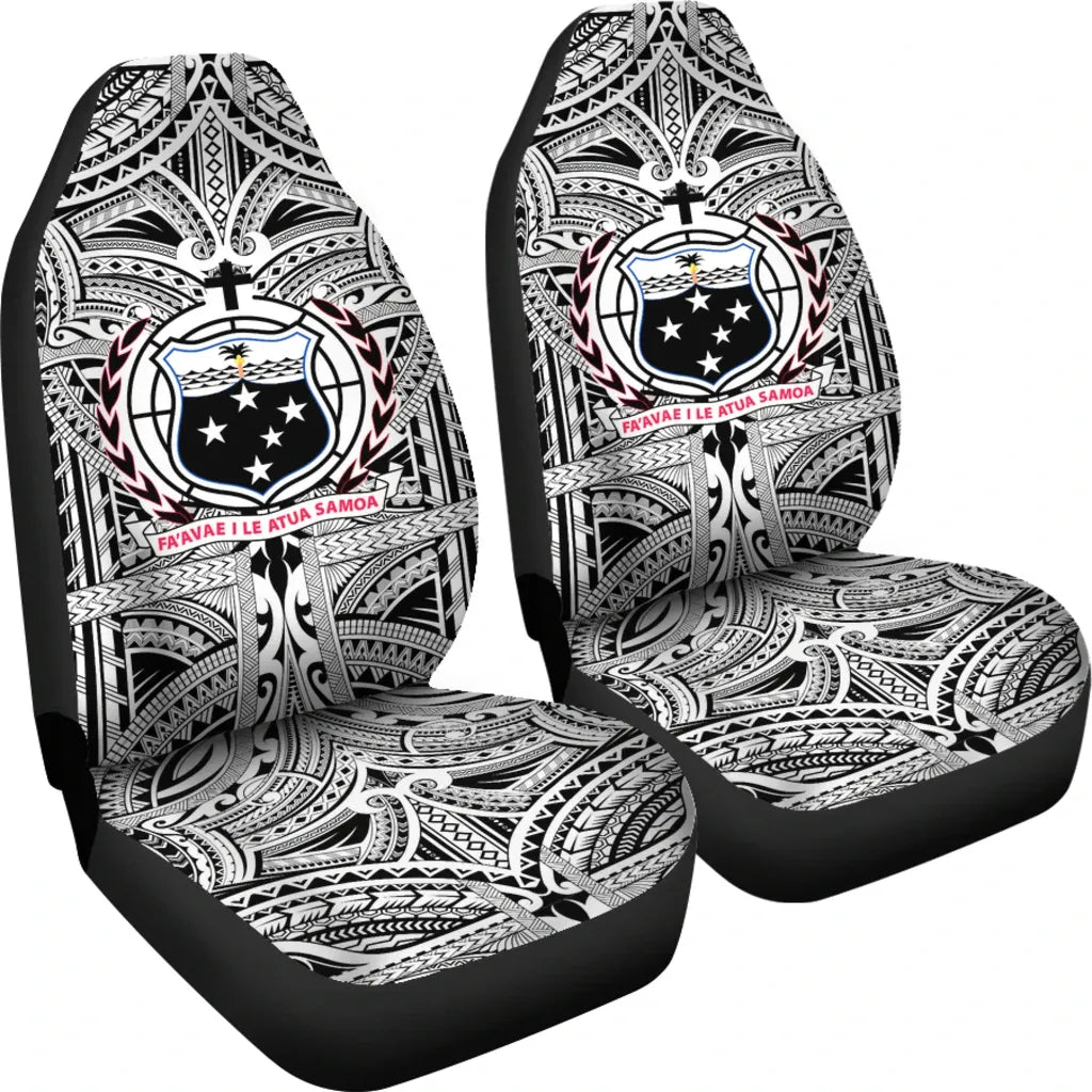 Samoa Car Seat Cover - Samoa Coat Of Arms, Polynesian Tattoo White And Black