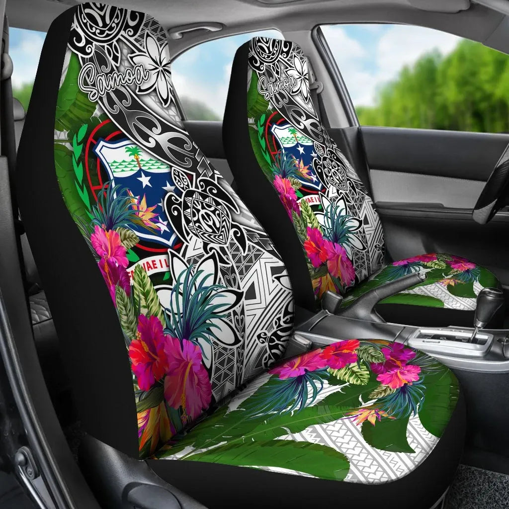 Samoa Car Seat Covers White - Turtle Plumeria Banana Leaf