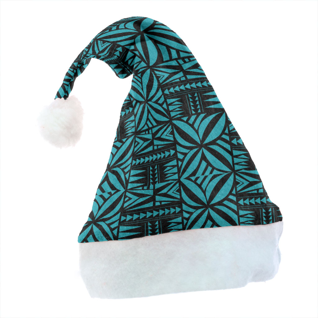 Samoa Christmas Hat Design Stretch Print Fabric Turquoise