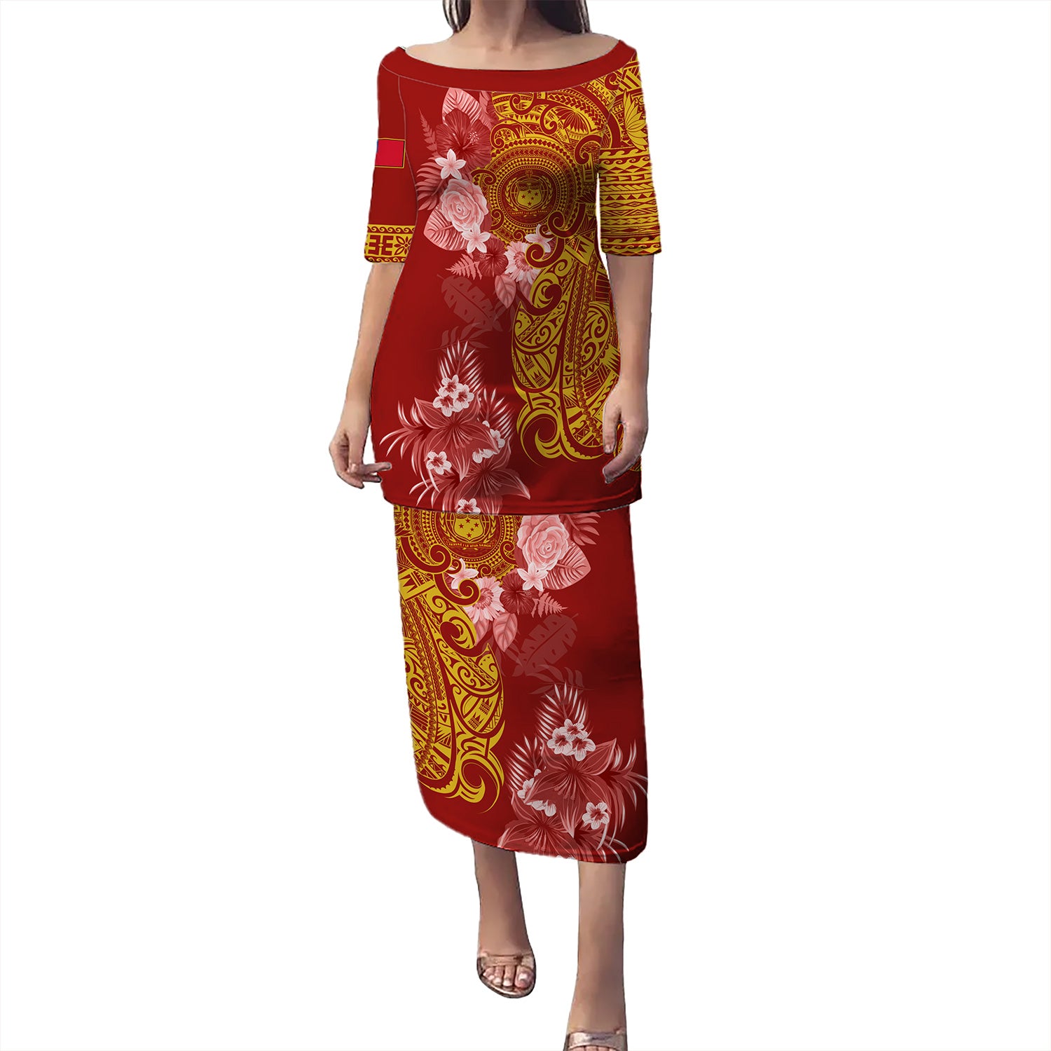 Samoa Combo Puletasi And Shirt Polynesian Tropical Plumeria Tribal Red