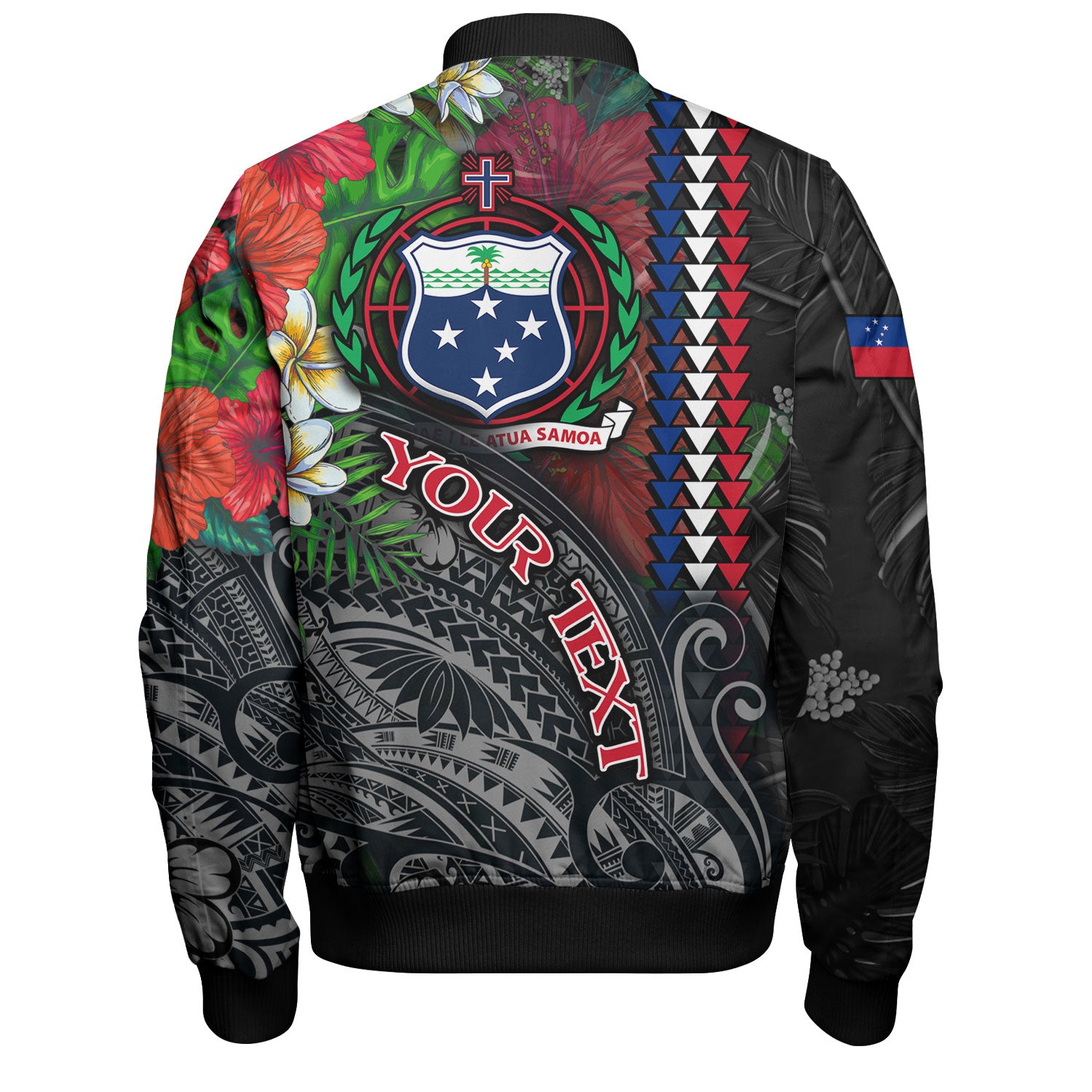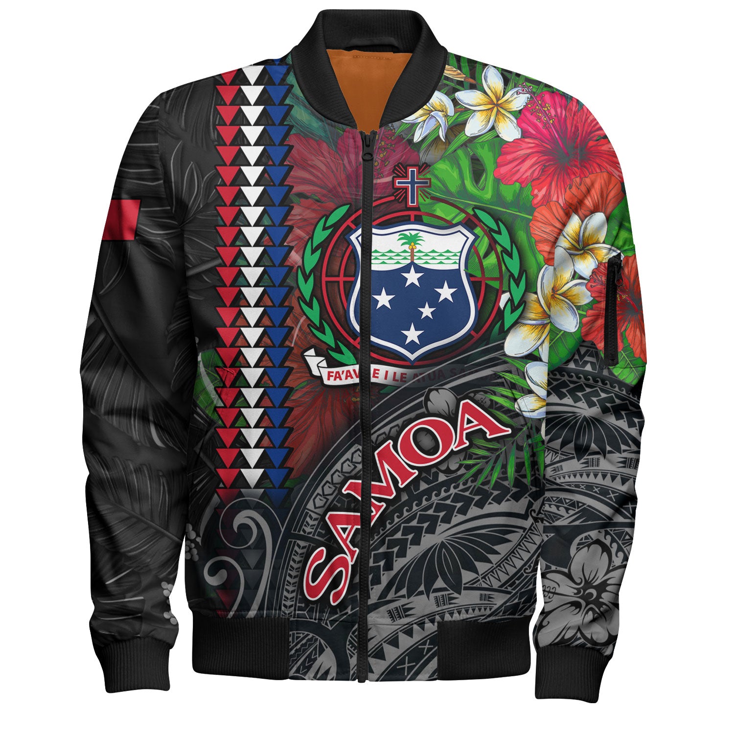 Samoa Bomber Jacket Samoa Seal Hibiscus And Plumeria With Palm Branches Vintage Style