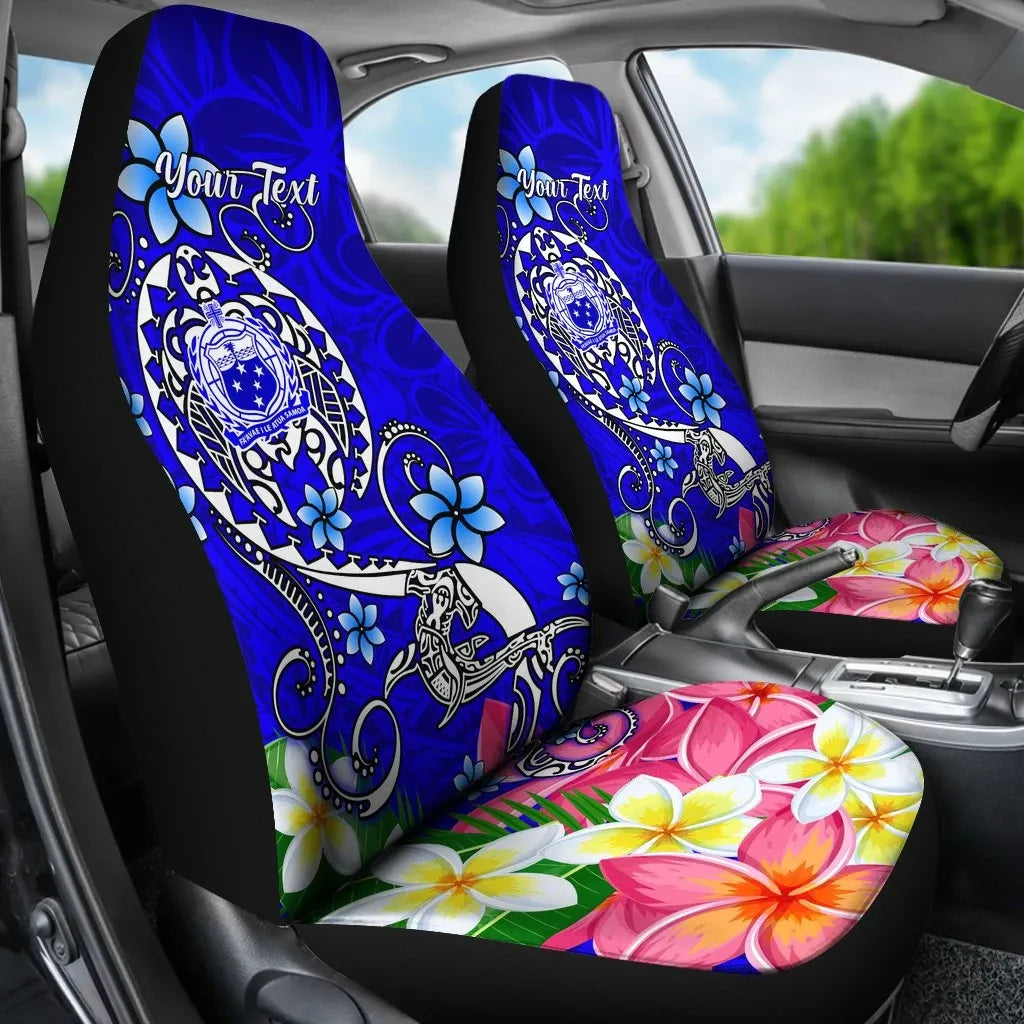 Samoa Custom Personalised Car Seat Covers - Turtle Plumeria (Blue)
