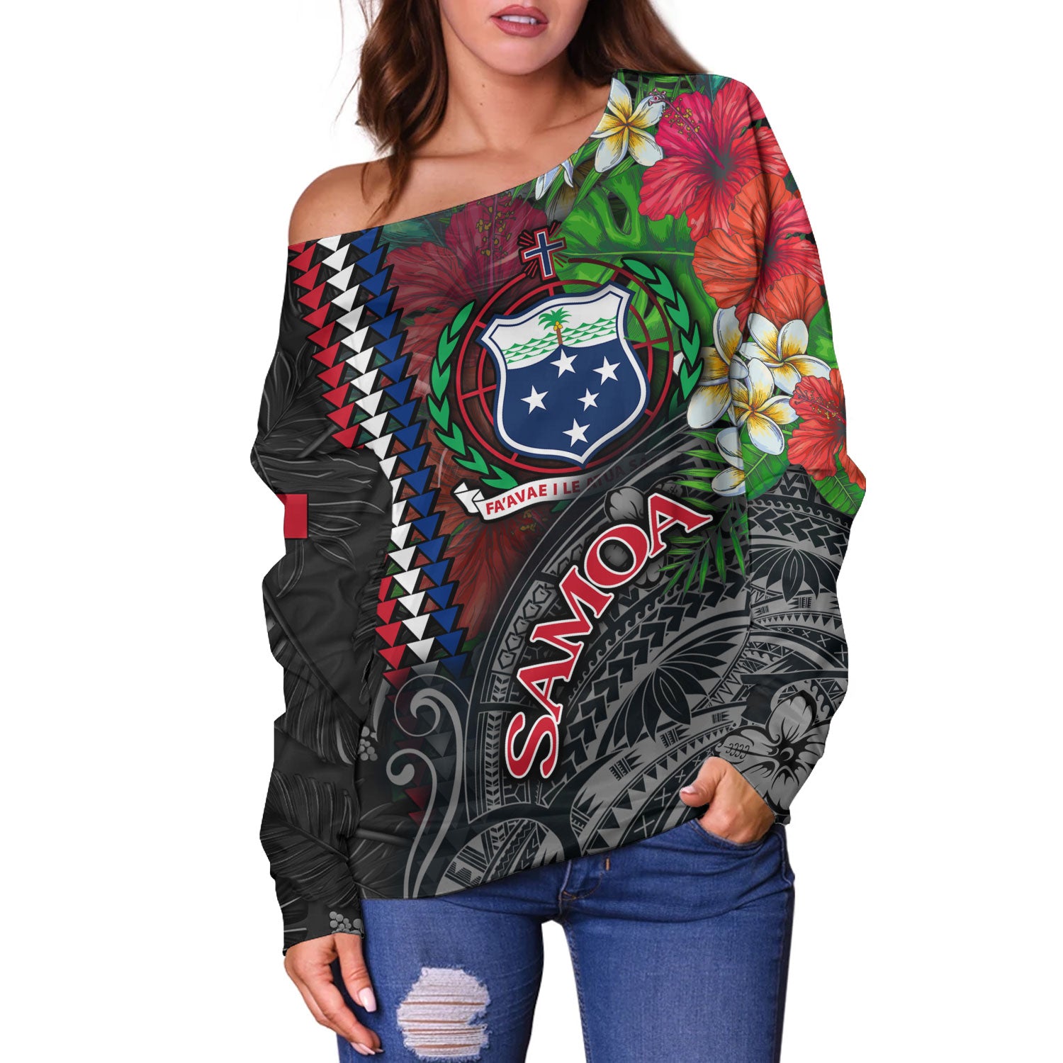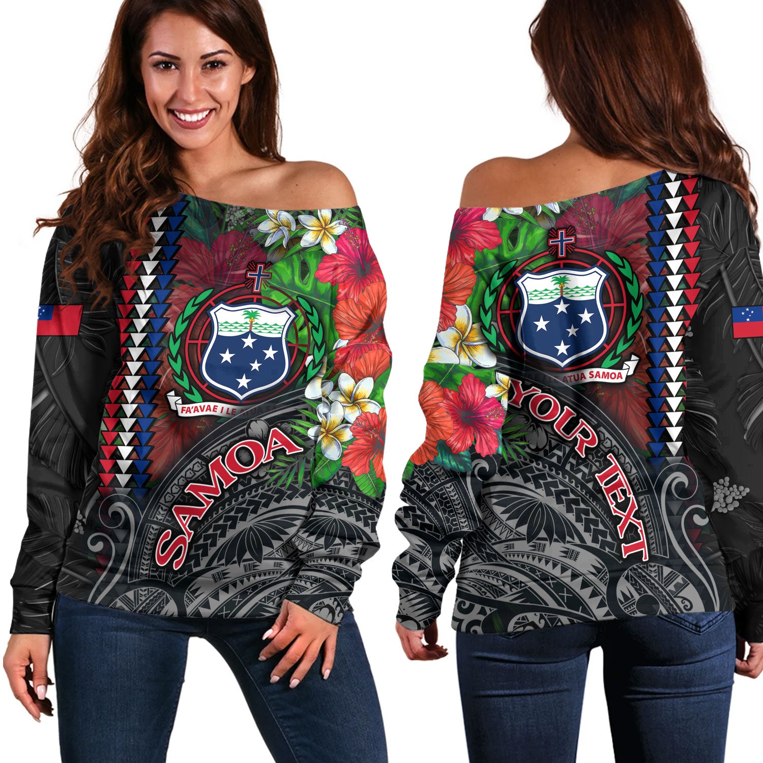Samoa Custom Personalised Off Shoulder Sweatshirt Samoa Seal Hibiscus And Plumeria With Palm Branches Vintage Style