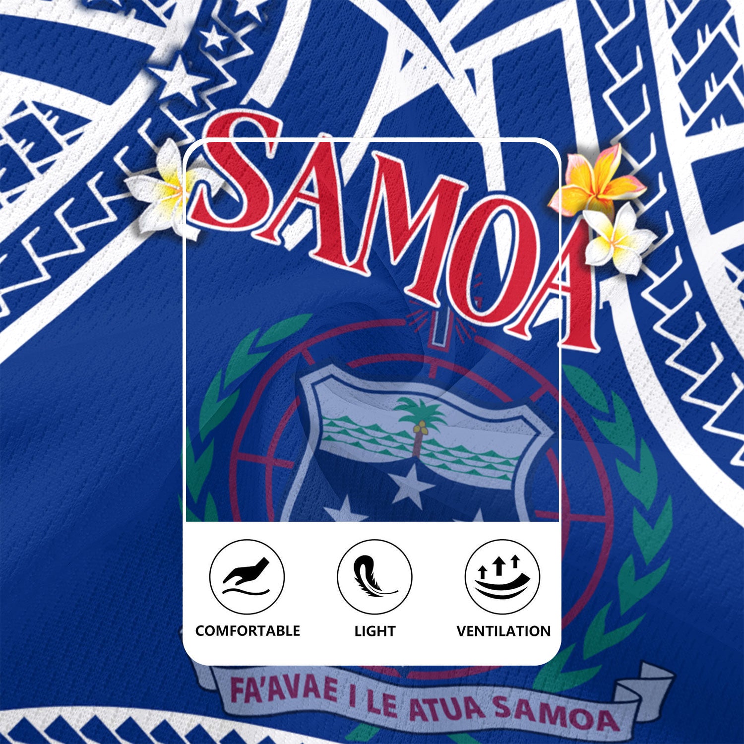 Samoa Rugby Jersey Polynesian Plumeria Flowers Mix Tribal Patterns