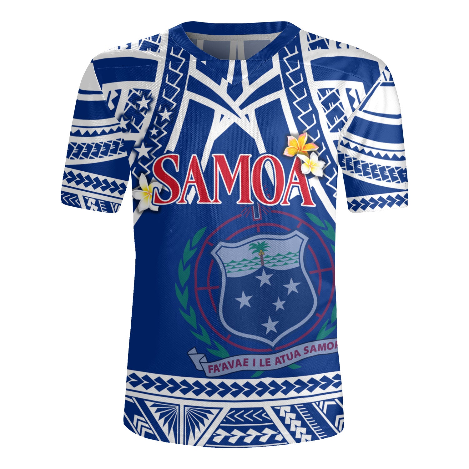 Samoa Custom Personalised Rugby Jersey Polynesian Plumeria Flowers Mix Tribal Patterns