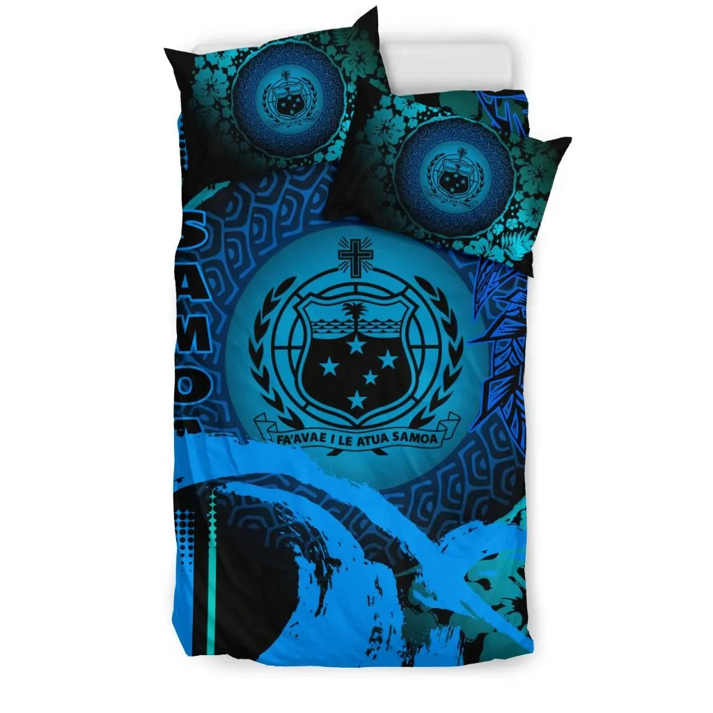 Samoa Duvet Cover Set - Hibiscus And Wave Light Blue
