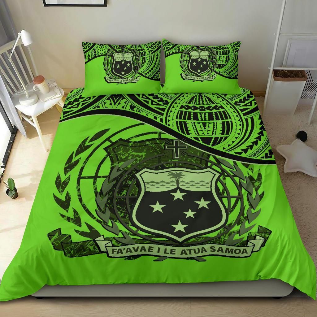 Samoa Duvet Cover Set - Special Grunge Samoa Flag Coat Of Arms Green