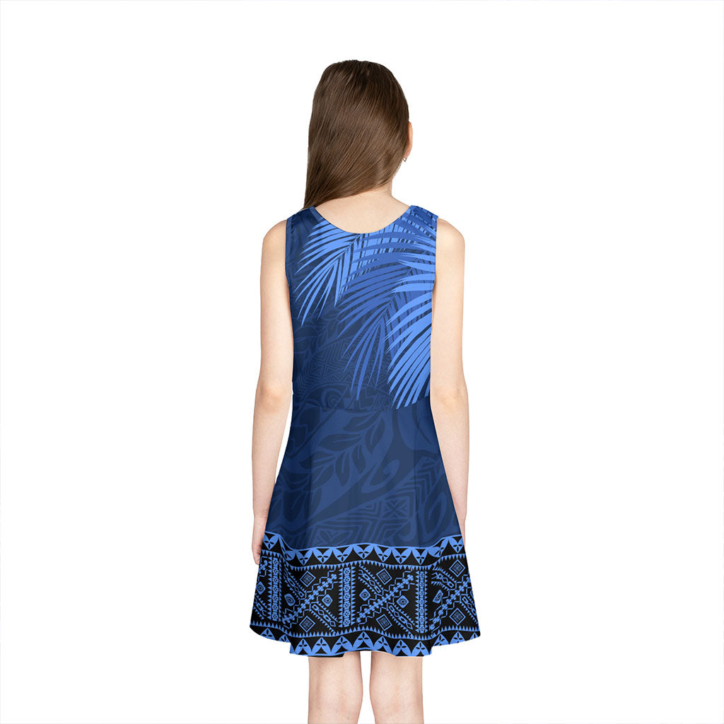 Samoa Girls Sleeveless Sundress Polynesian Fabric Leaves