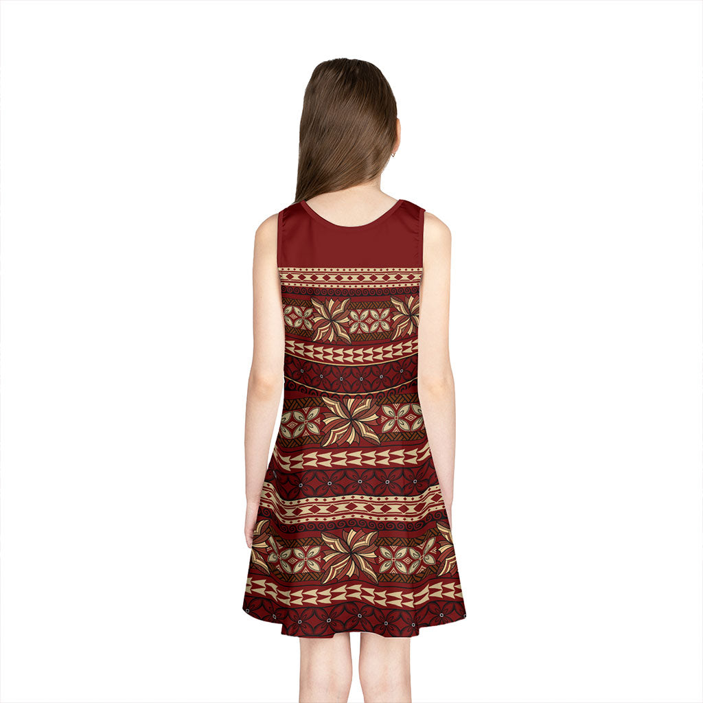 Samoa Girls Sleeveless Sundress Siapo Design Pattern