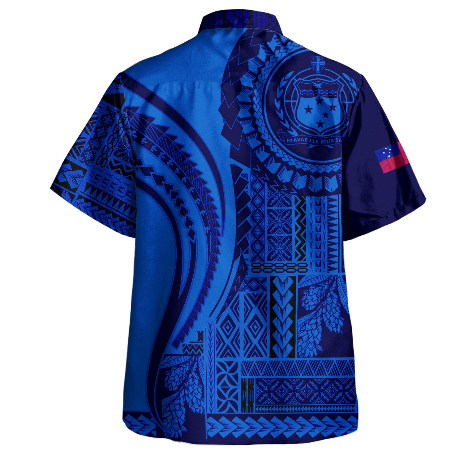 Samoa Hawaiian Shirt Seal Samoan Siapo Blue Design
