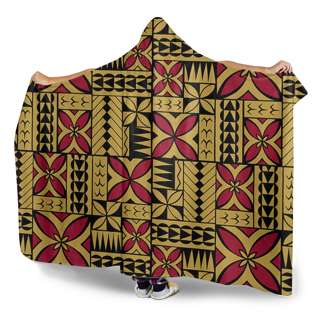 Samoa Hooded Blanket Siapo Design Tribal Pattern Yellow