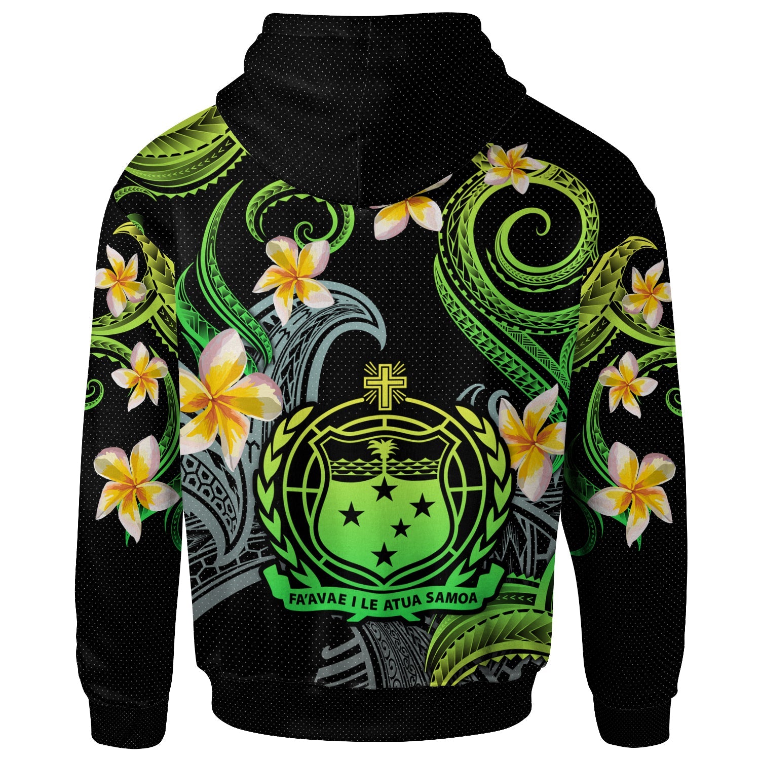 Samoa Hoodie - Custom Personalised Polynesian Waves with Plumeria Flowers (Green)