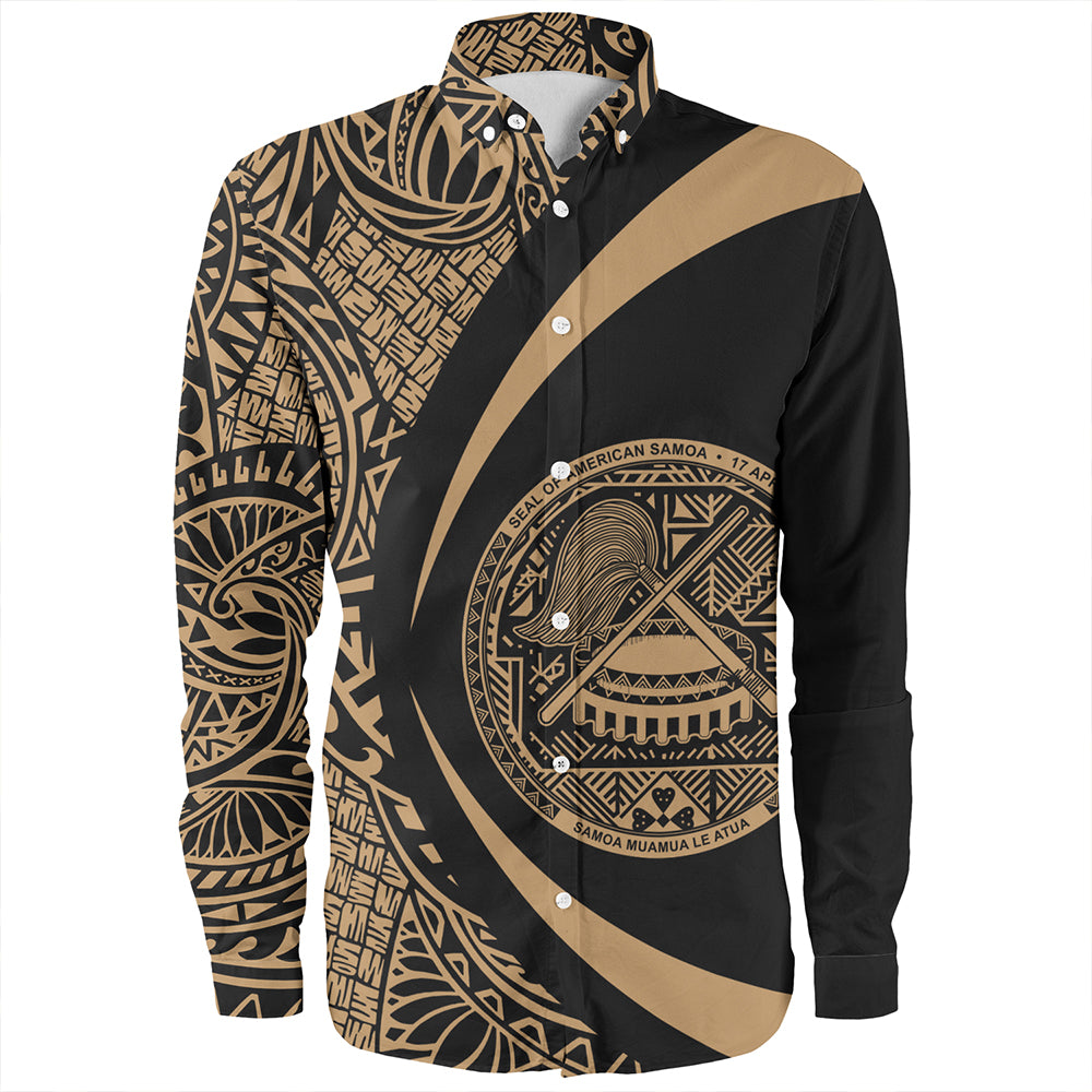Samoa Long Sleeve Shirt American Samoa Coat Of Arm Lauhala Gold Circle