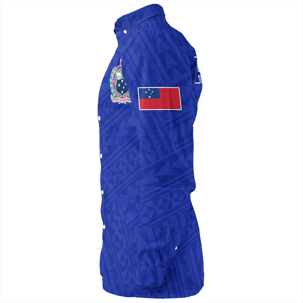 Samoa Long Sleeve Shirt Floral Ulafala Lei Style Blue
