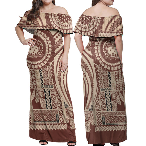 Samoa Off Shoulder Long Dress Seal Samoan Siapo Brown Design