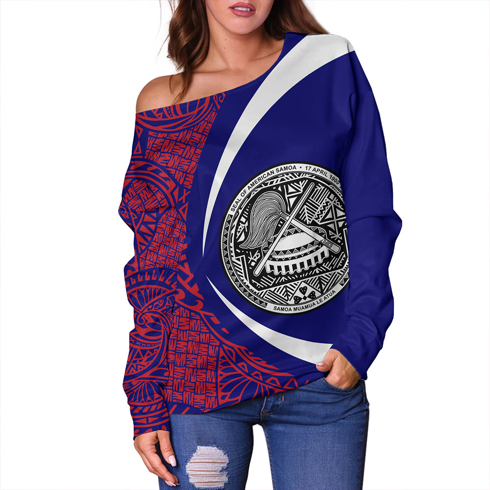 Samoa Off Shoulder Sweatshirt American Samoa Coat Of Arm Lauhala Circle