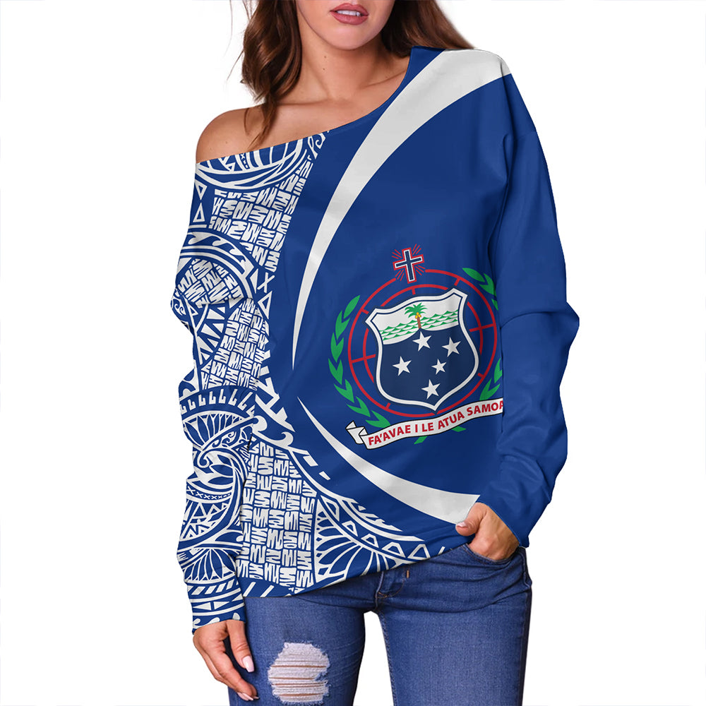 Samoa Off Shoulder Sweatshirt Coat Of Arm Lauhala Rugby Circle