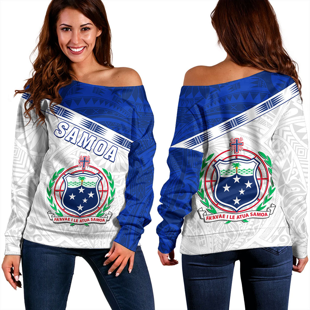 Samoa Off Shoulder Sweatshirt Coat Of Arms Tribal