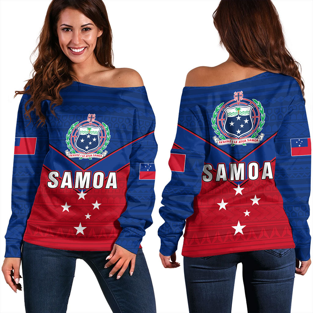 Samoa Off Shoulder Sweatshirt Custom Polynesian Tribal Sport Style