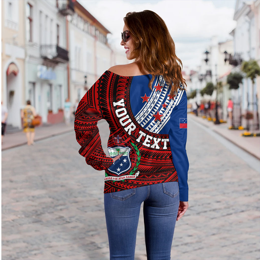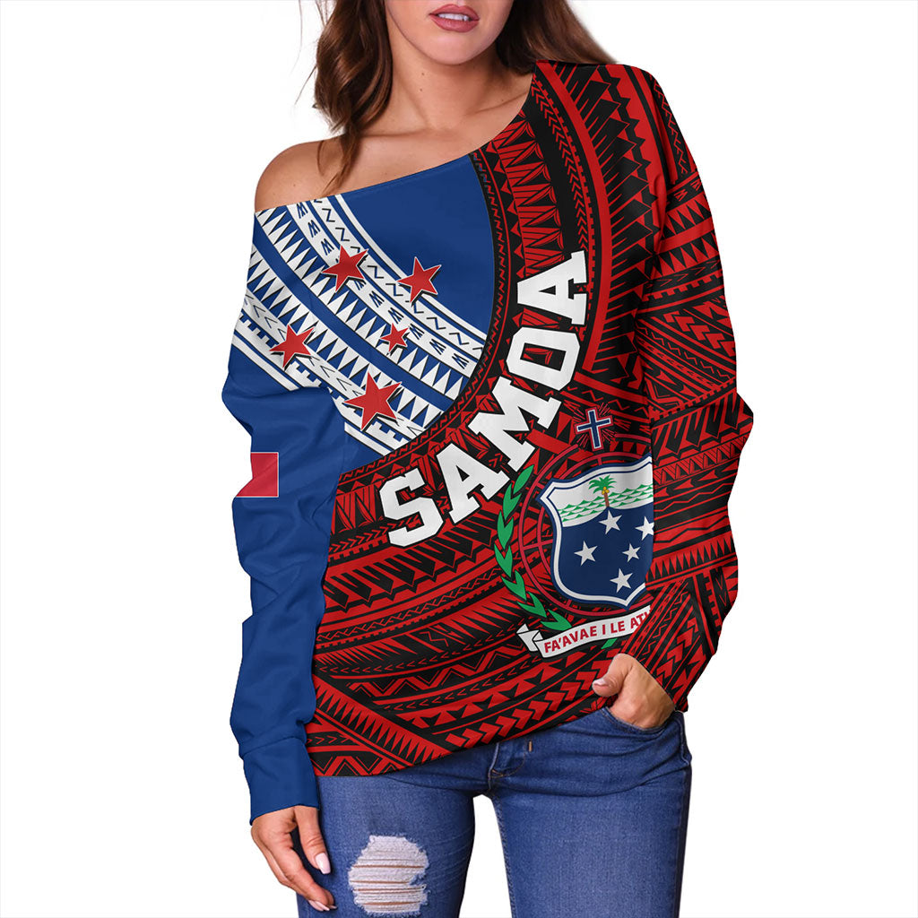 Samoa Off Shoulder Sweatshirt Custom Tribal Polynesian Flag Print