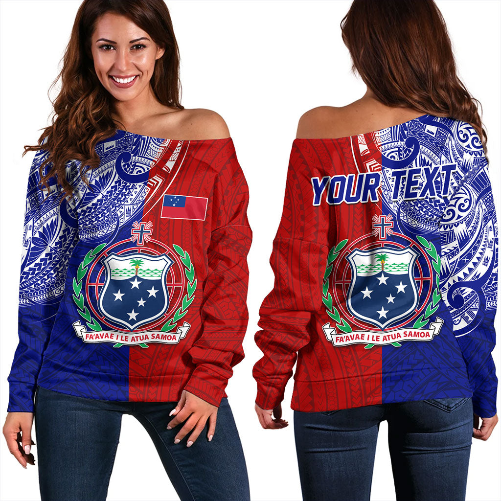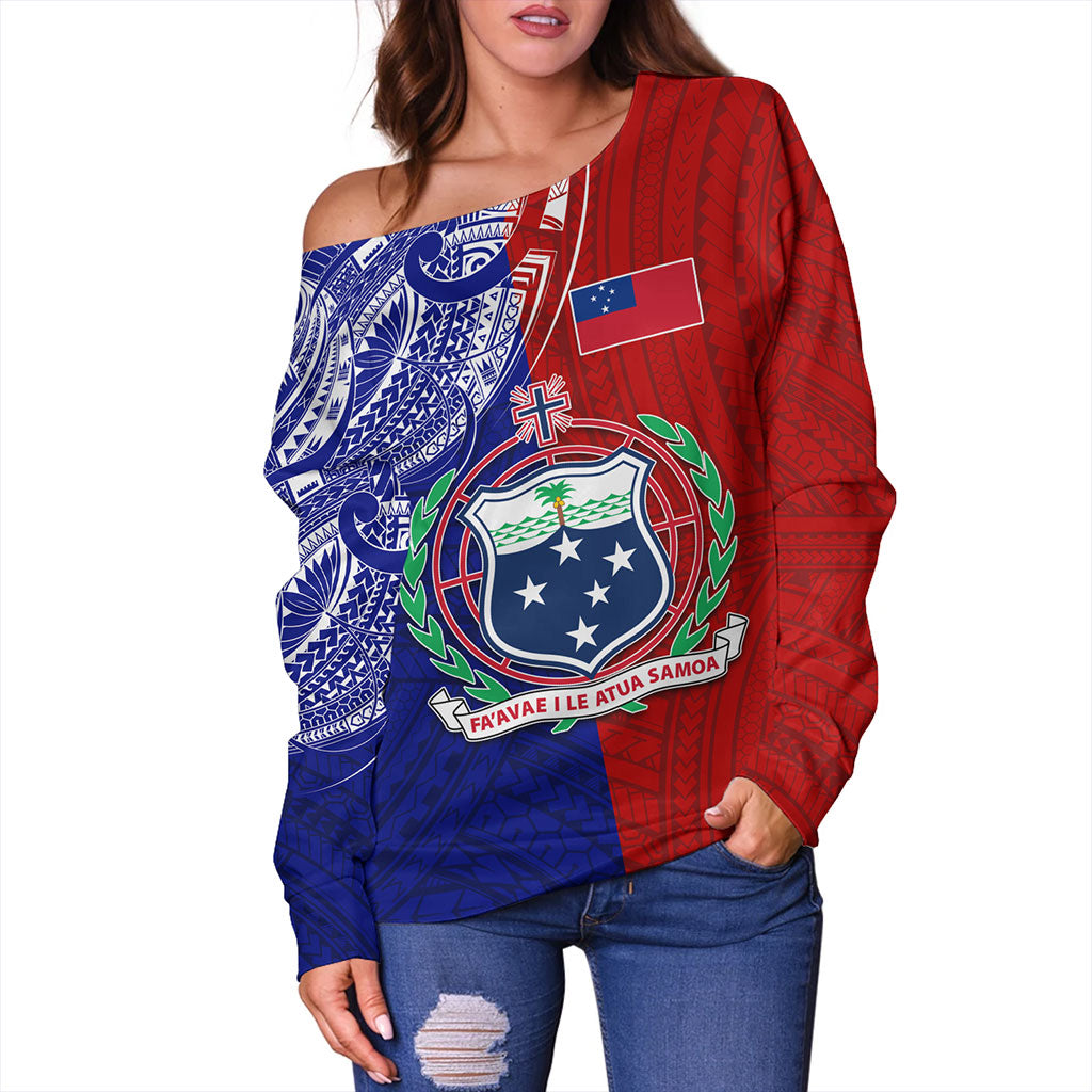 Samoa Off Shoulder Sweatshirt CustomHalf Style Flag And Coat Of Arms