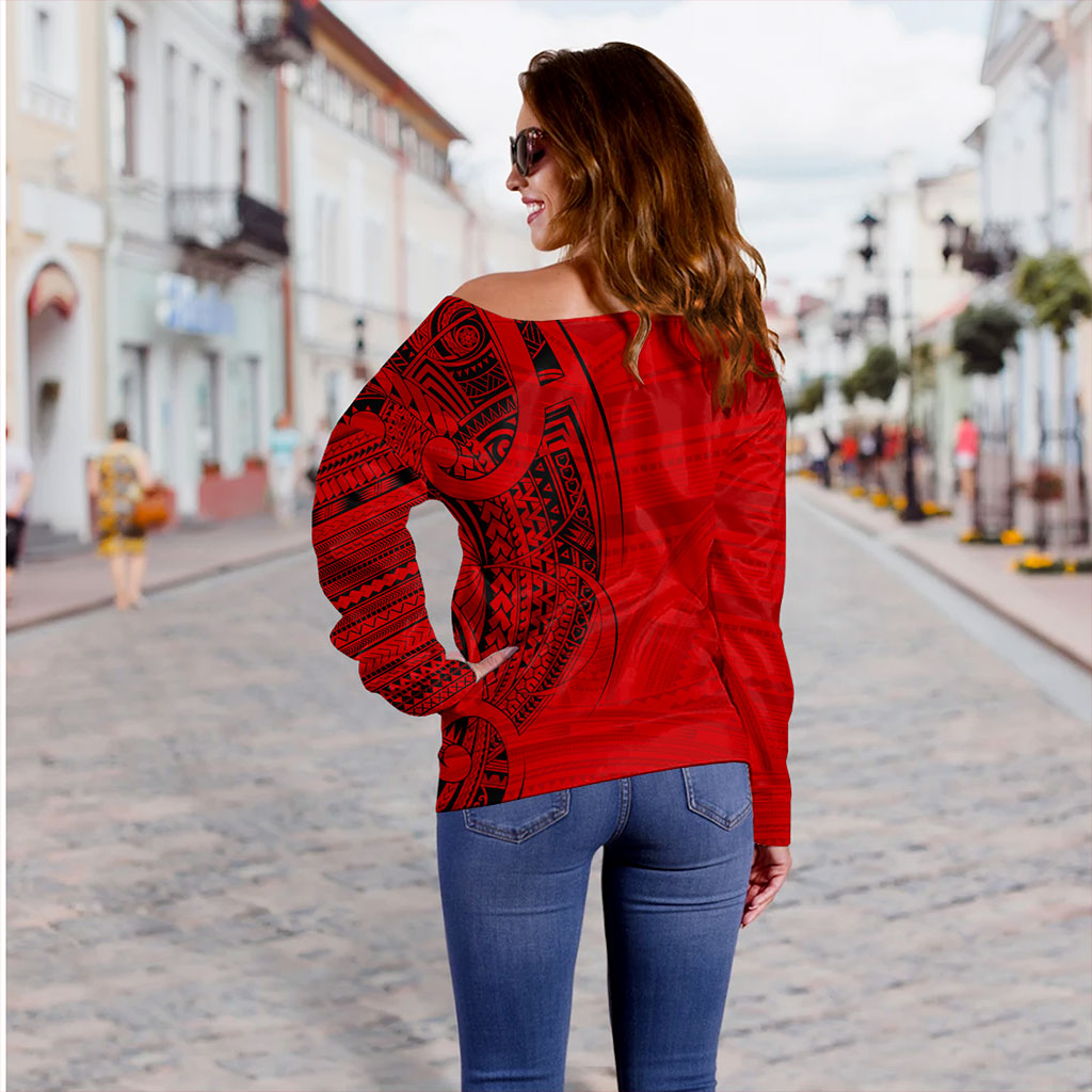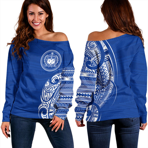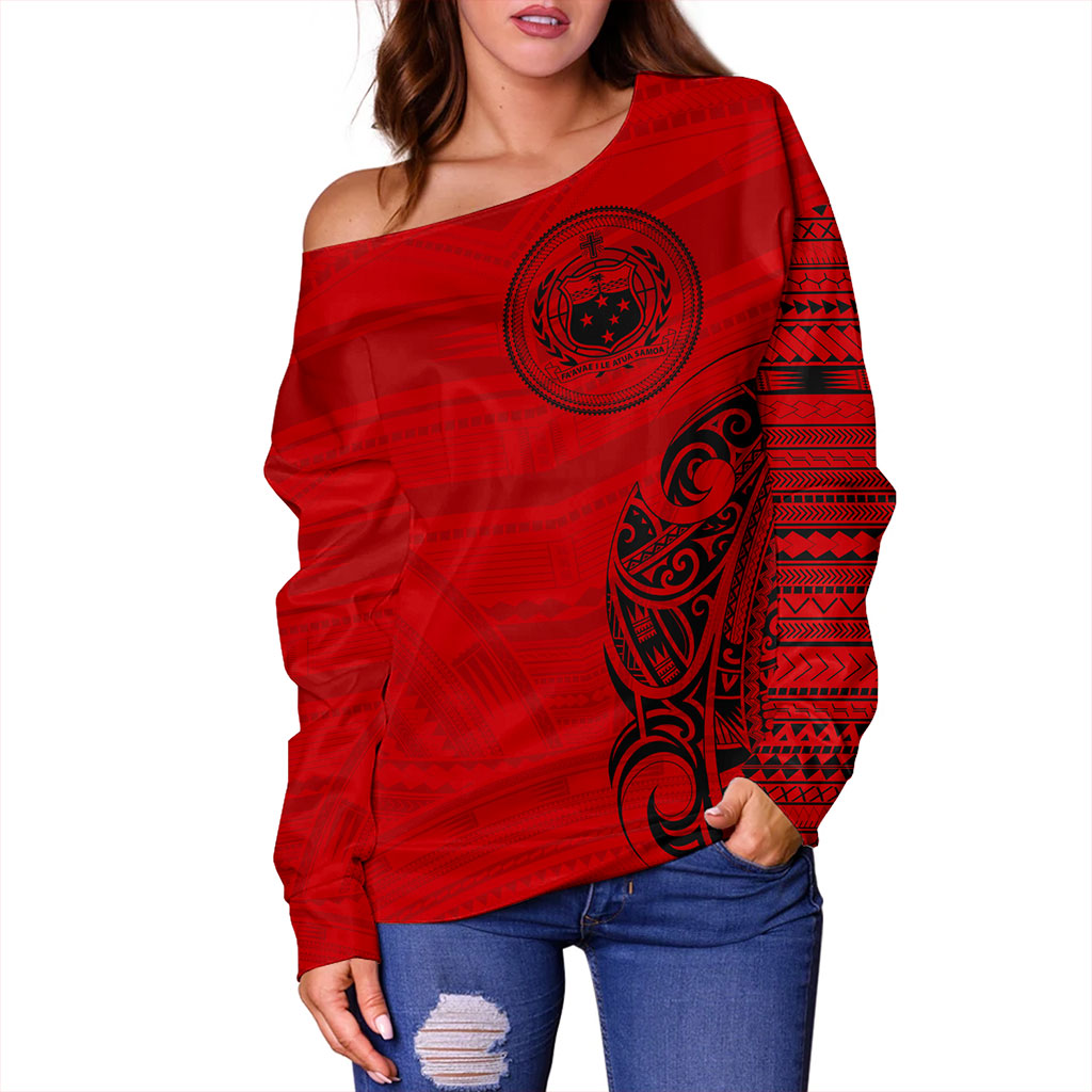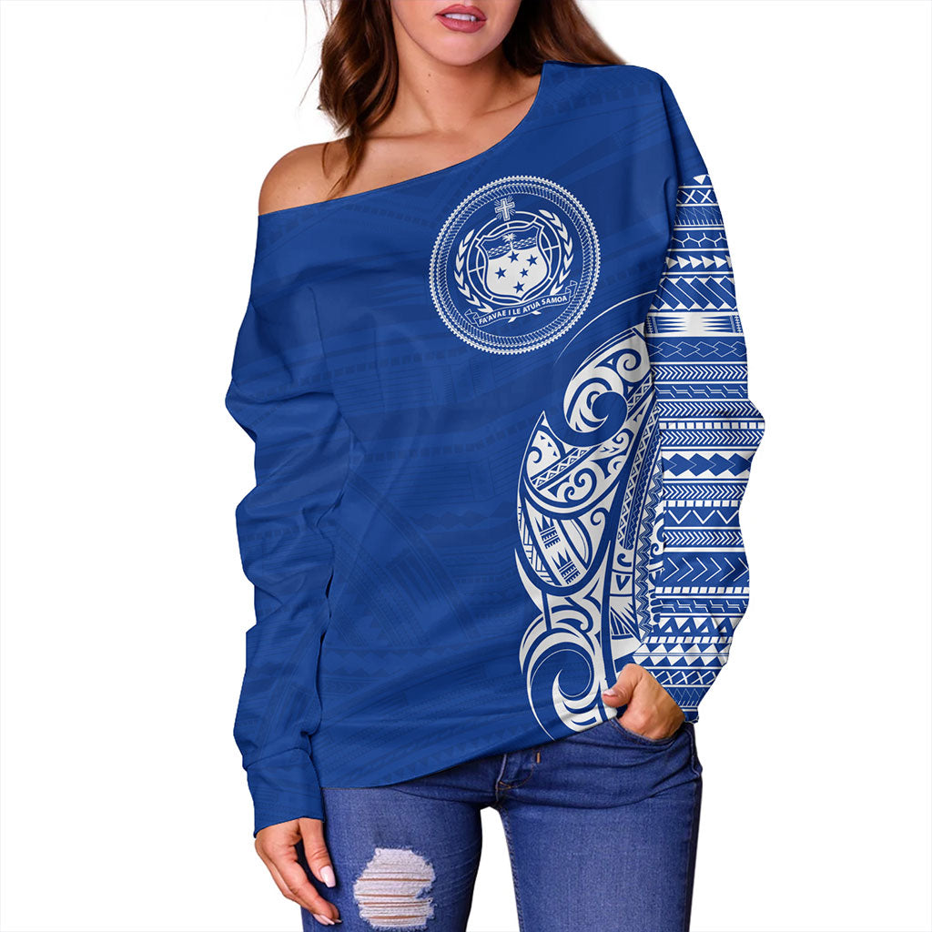 Samoa Off Shoulder Sweatshirt Polynesia Tribal Pattern Coat Of Arms