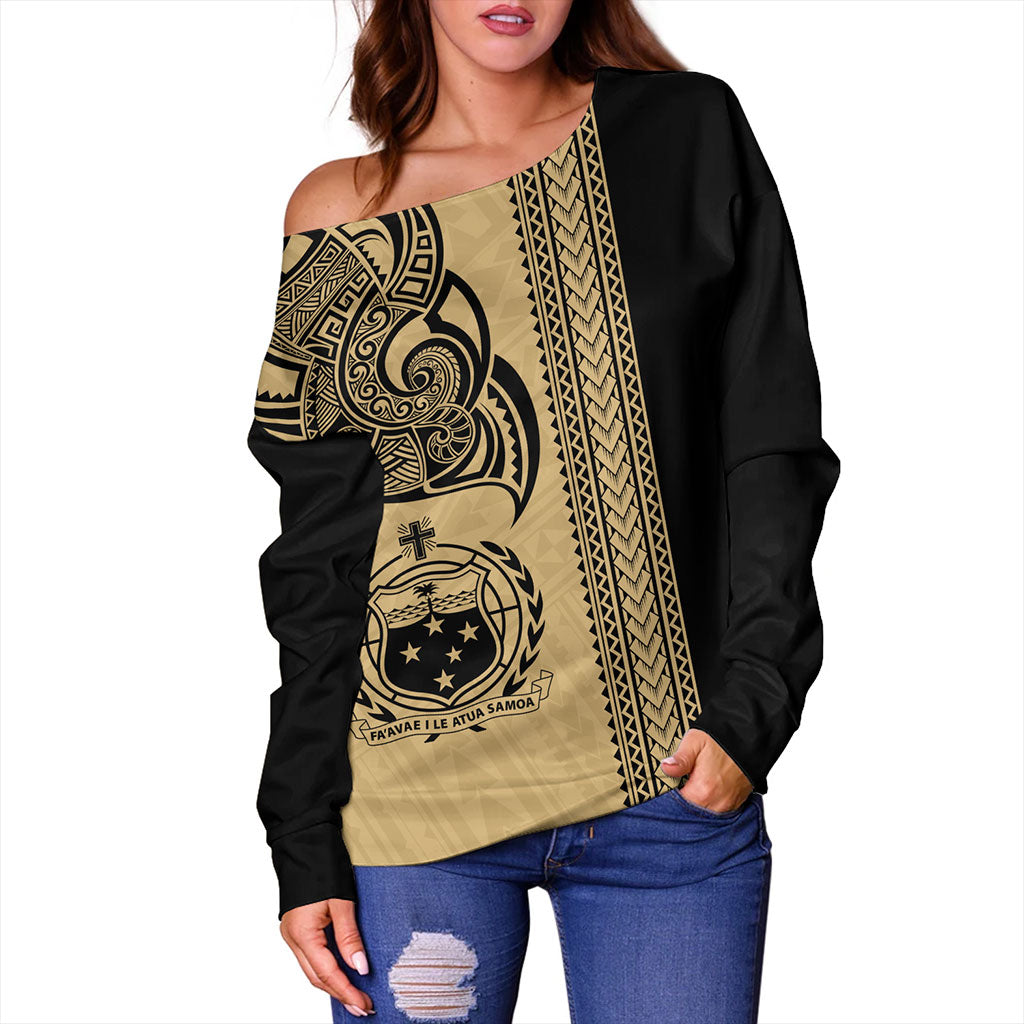 Samoa Off Shoulder Sweatshirt Polynesia Tribal Tattoo Gold