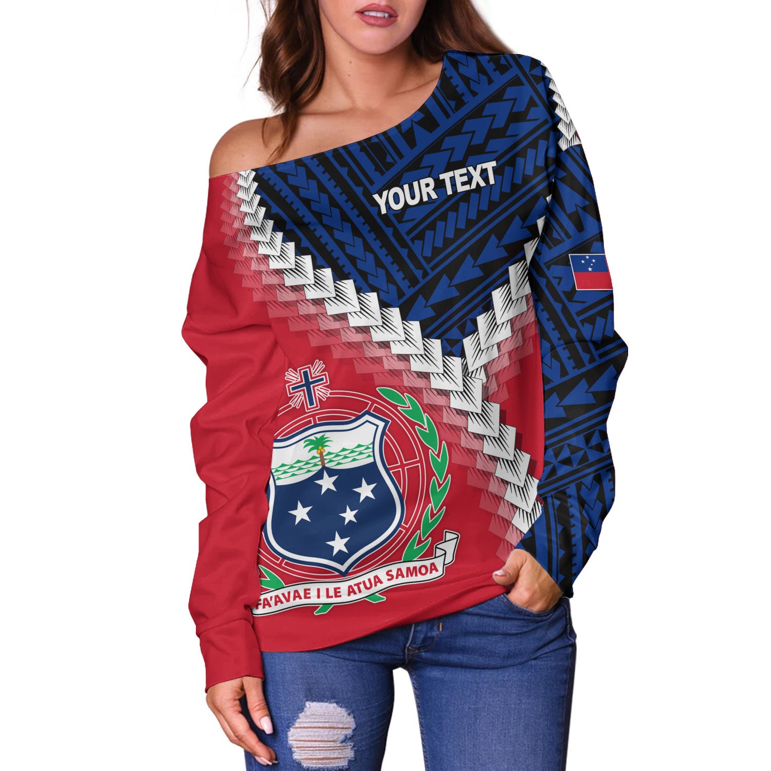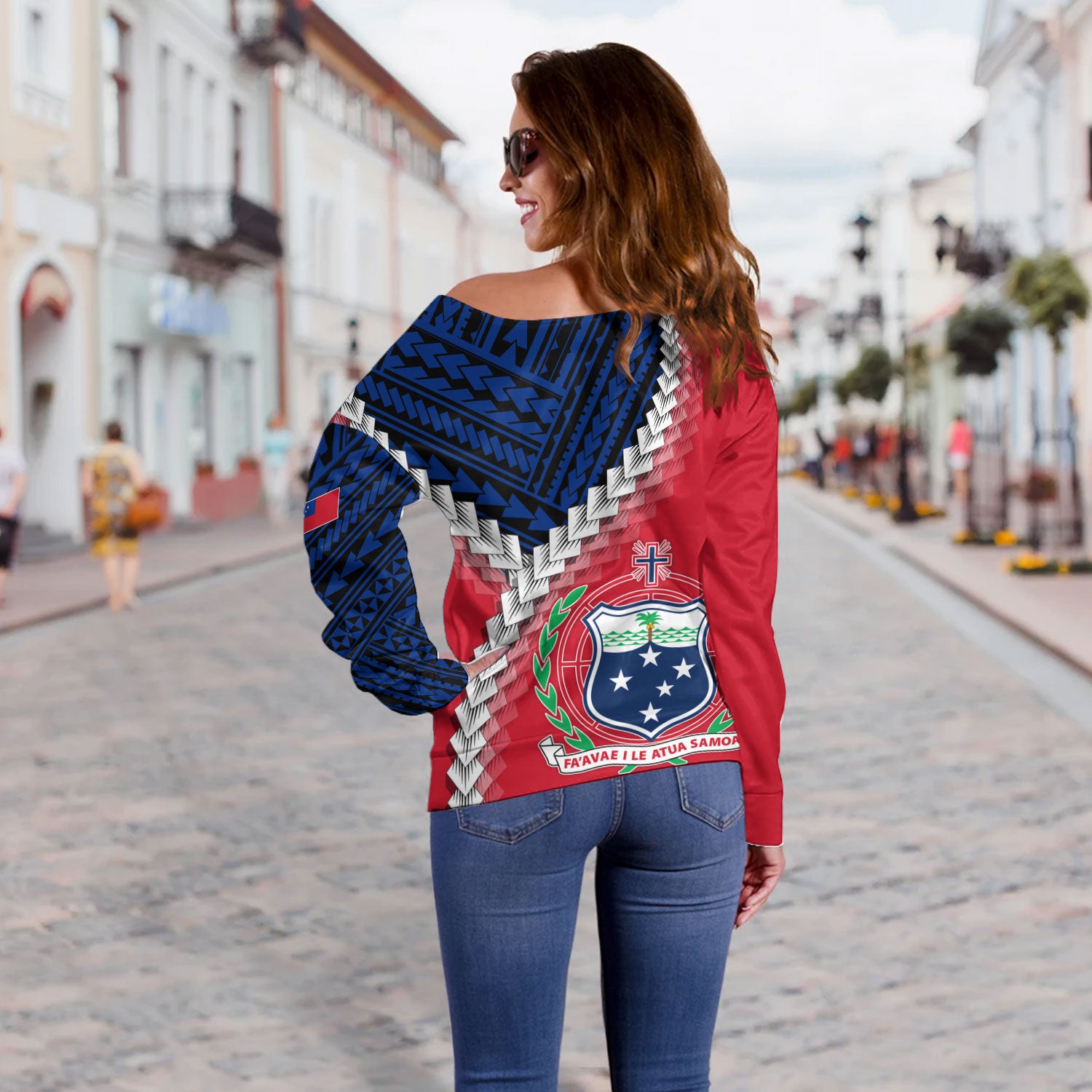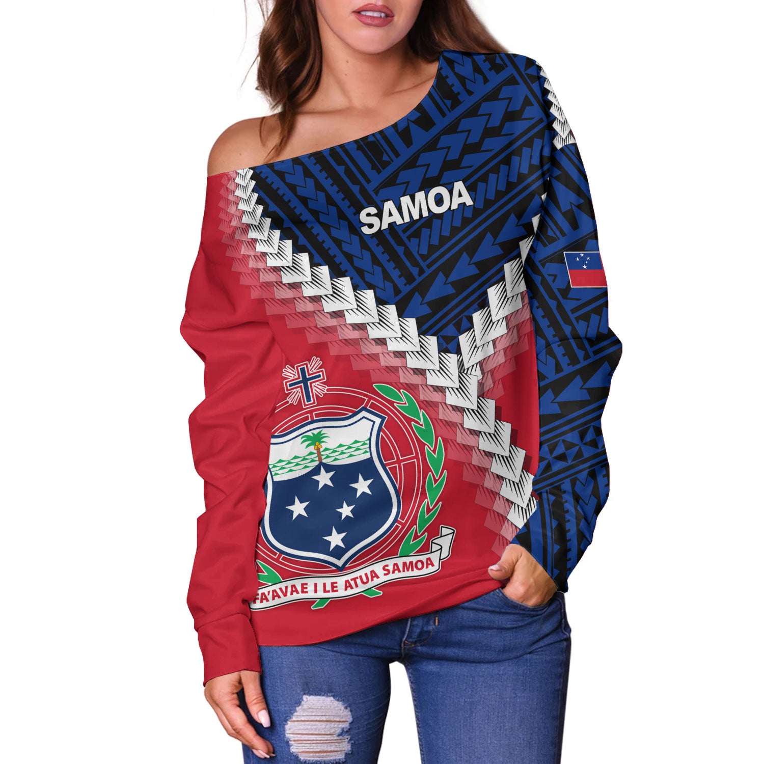 Samoa Off Shoulder Sweatshirt Samoa Coat Of Arms With Polynesian Tattoo Flag Style