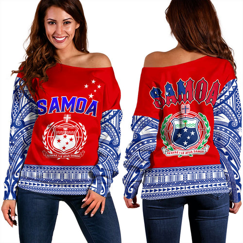 Samoa Off Shoulder Sweatshirt Tribal Polynesia Printed Flag Simple Style