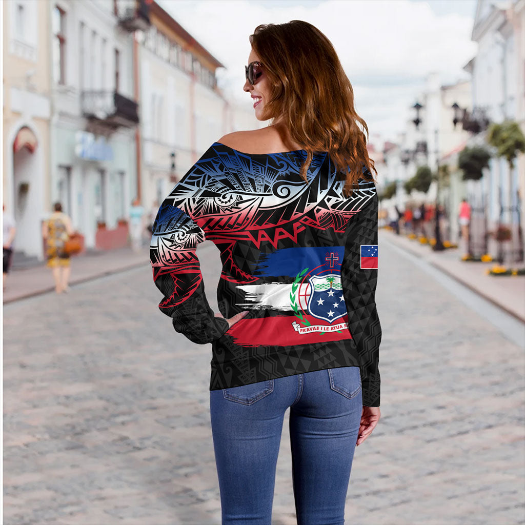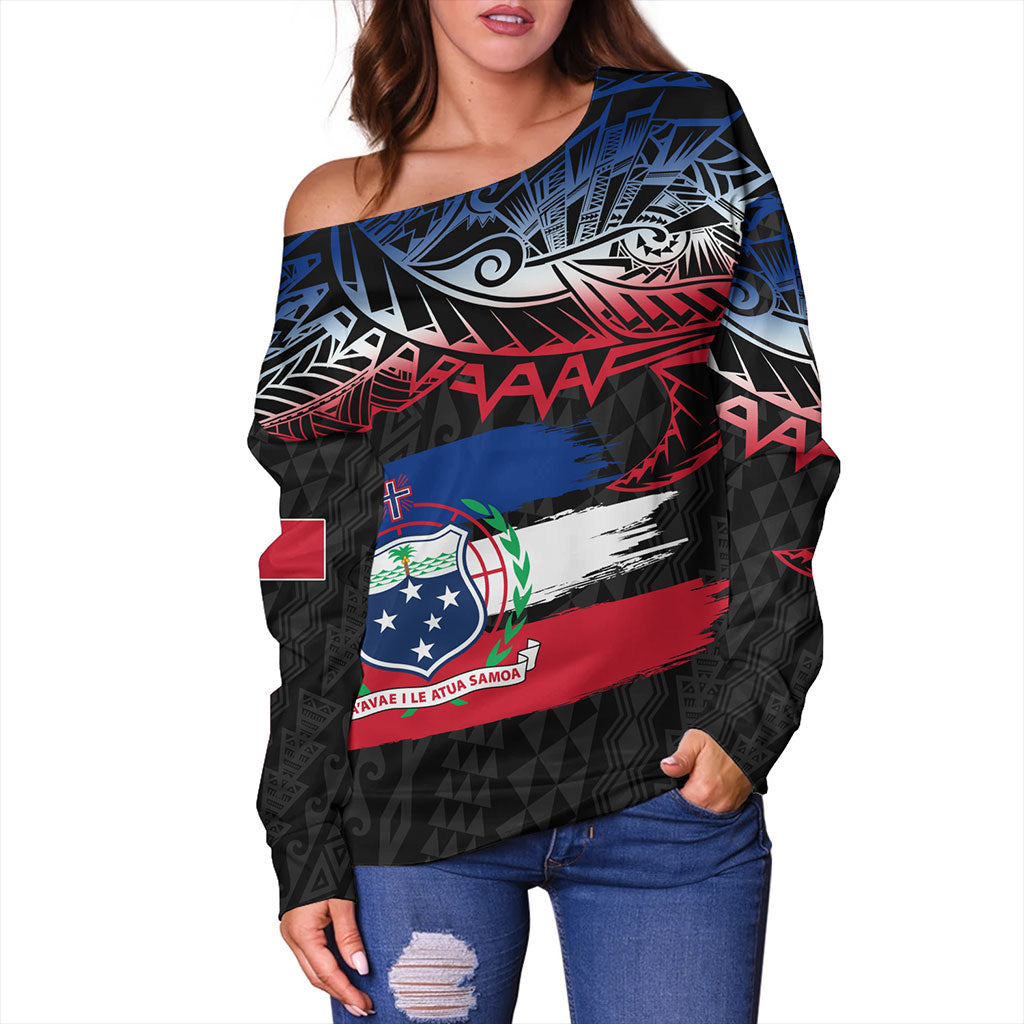 Samoa Off Shoulder Sweatshirt Tribal Polynesian Grunge Flag