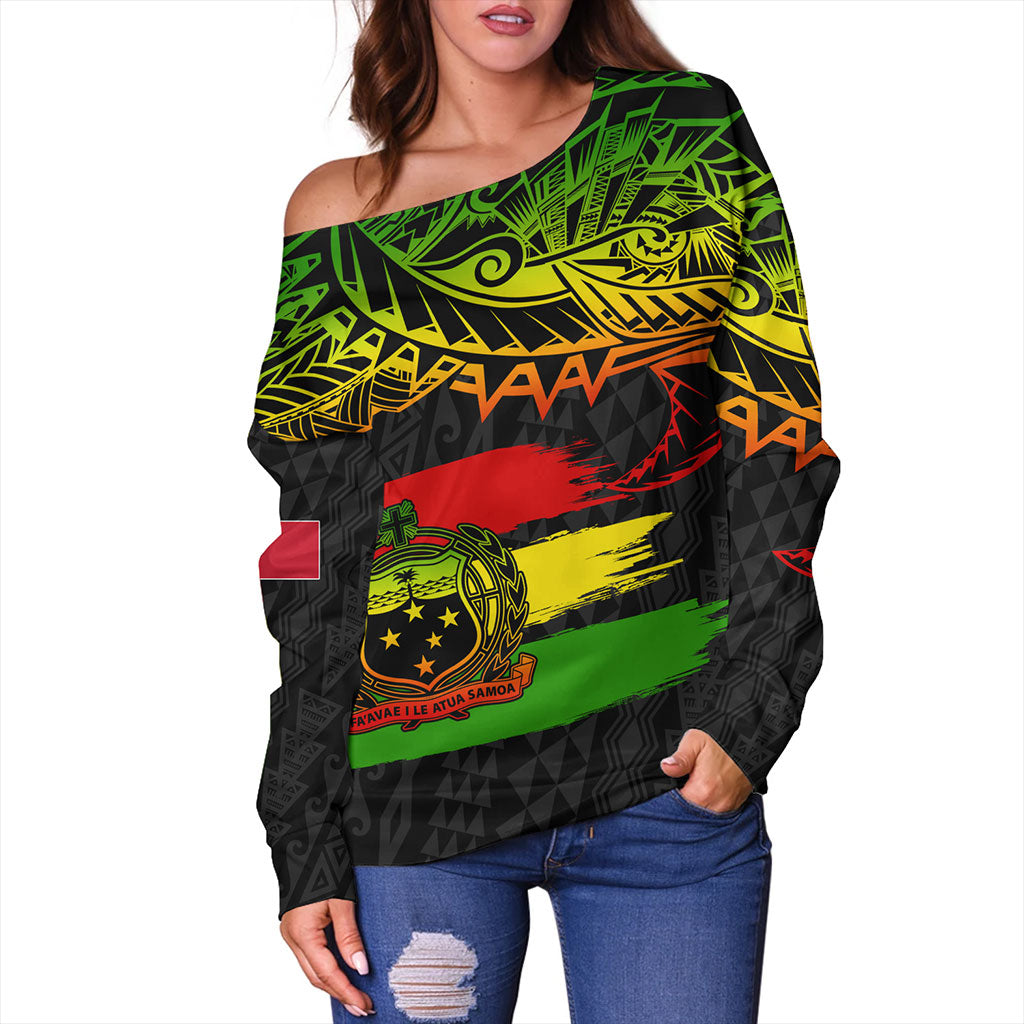 Samoa Off Shoulder Sweatshirt Tribal Polynesian Grunge Reggae