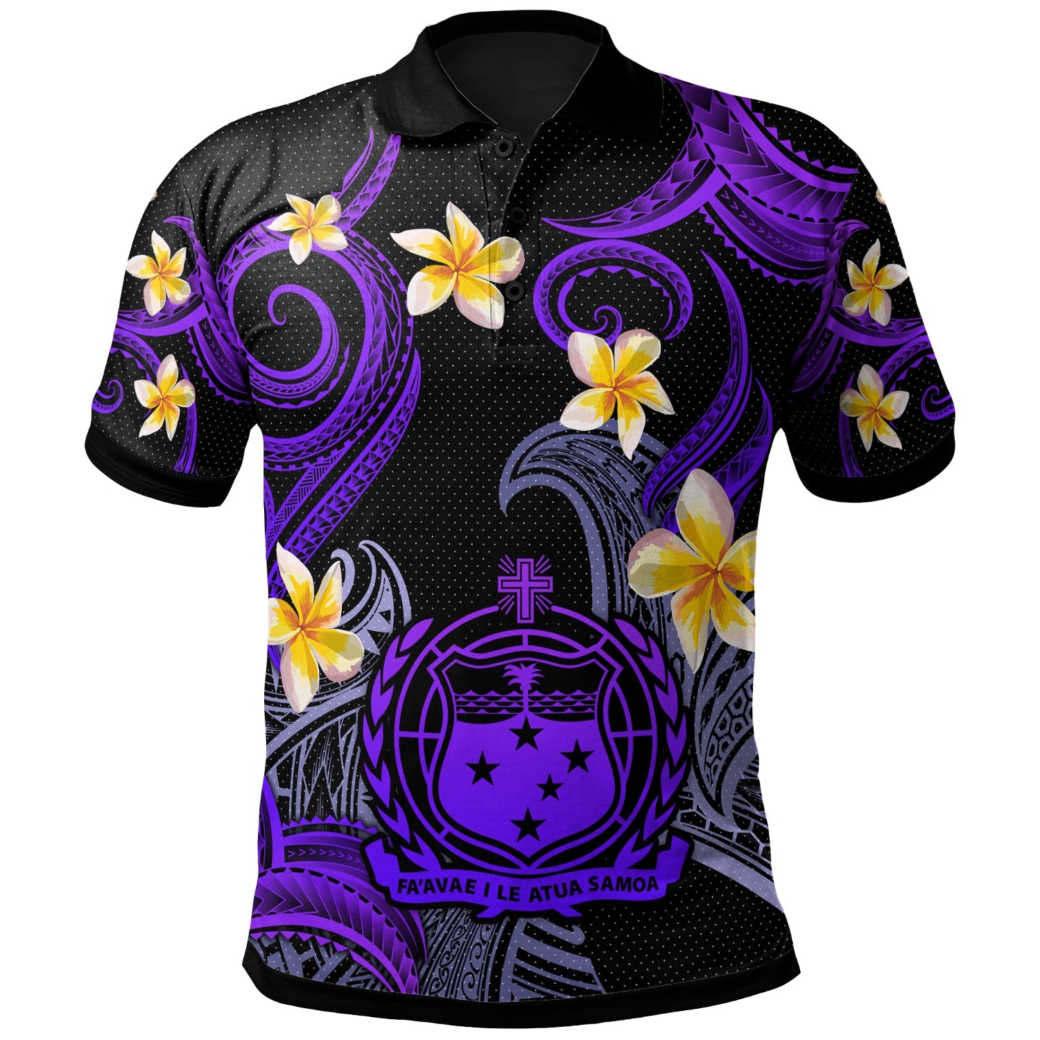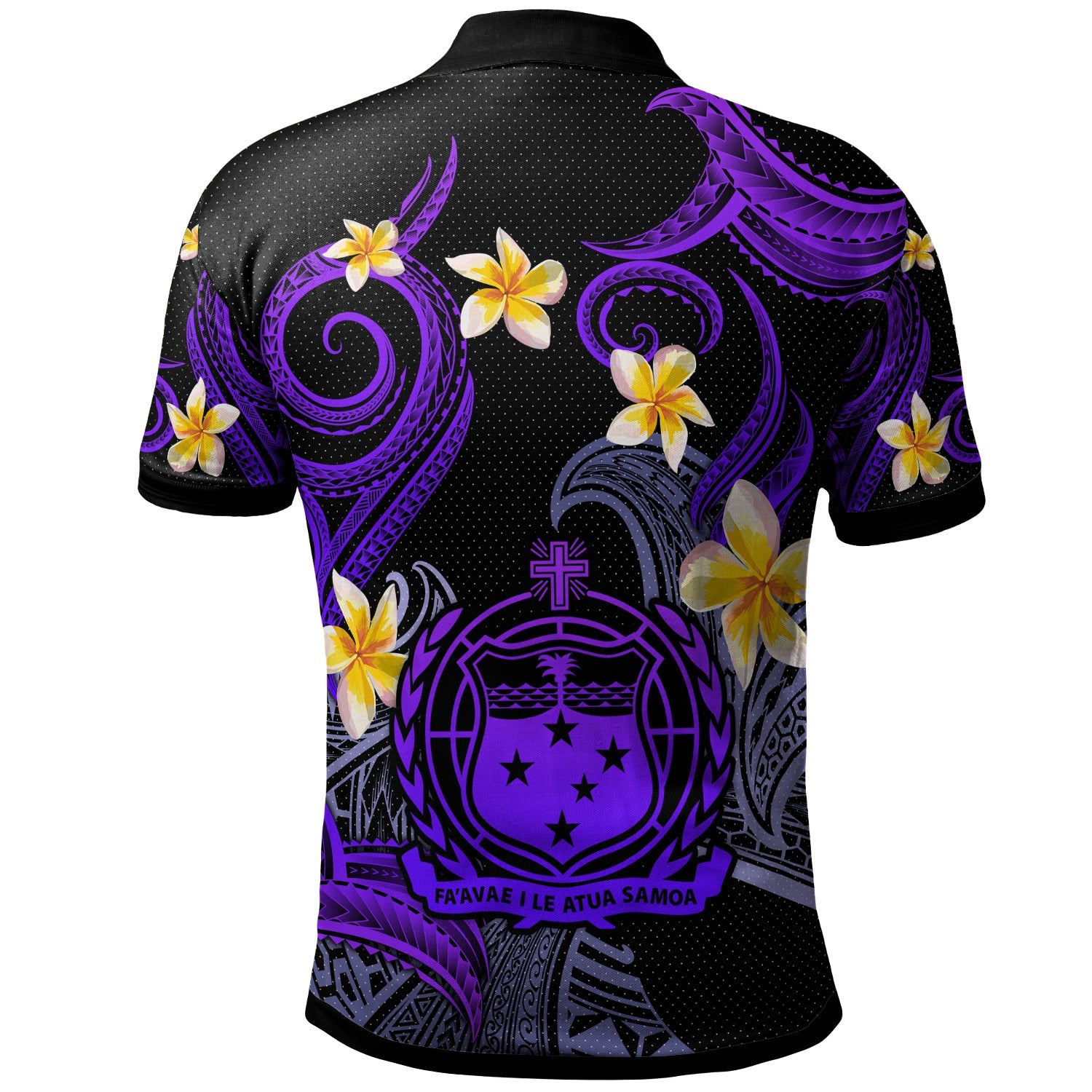 Samoa Polo Shirt - Custom Personalised Polynesian Waves with Plumeria Flowers (Purple)