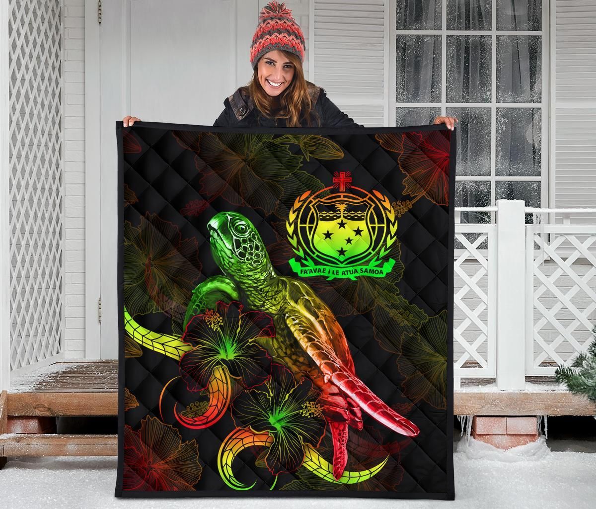 Samoa Polynesian Premium Quilt - Turtle With Blooming Hibiscus Reggae