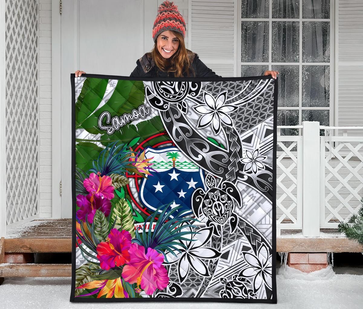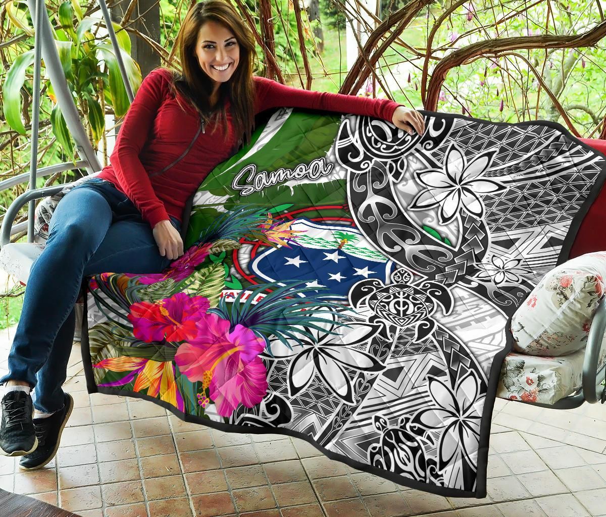Samoa Premium Quilt White - Turtle Plumeria Banana Leaf