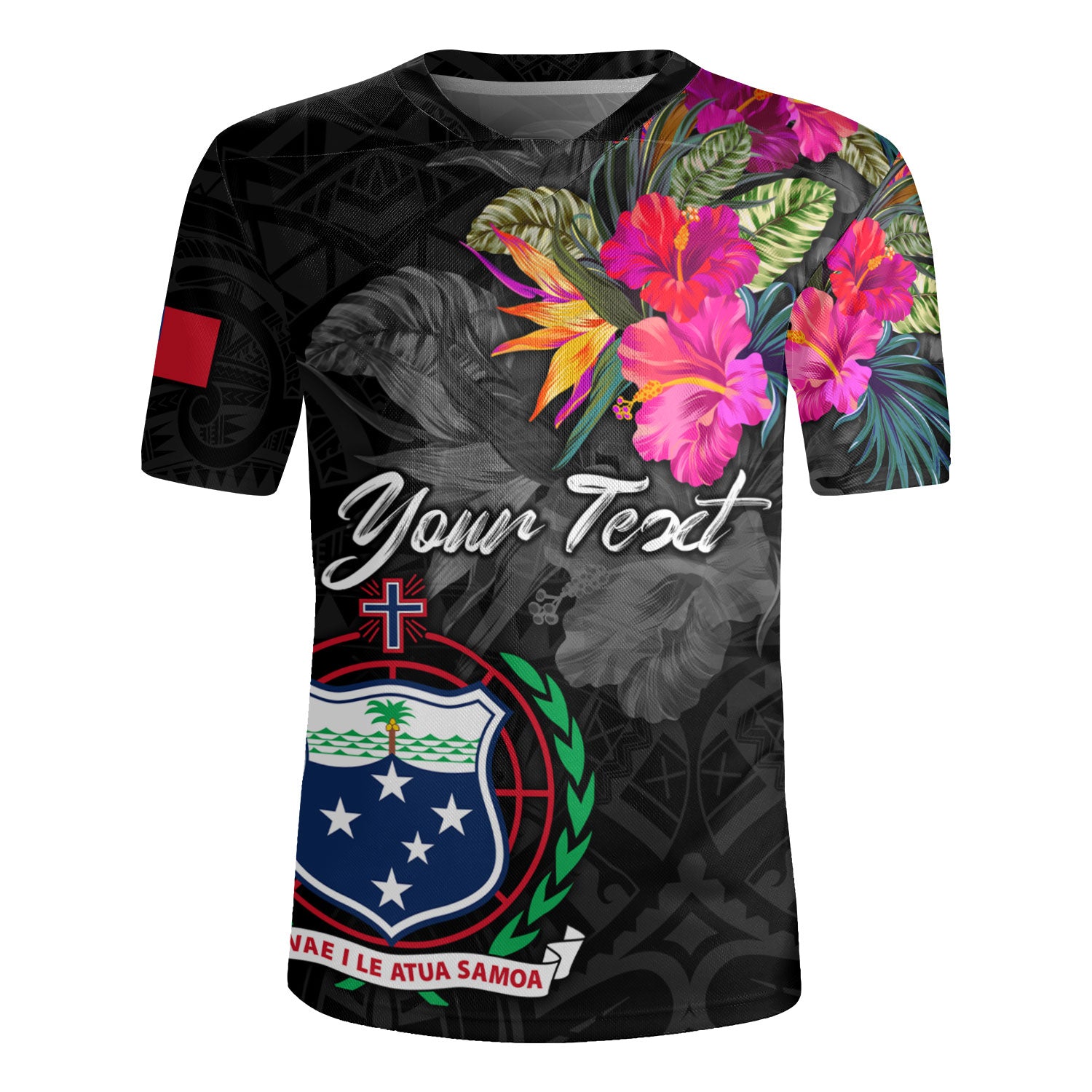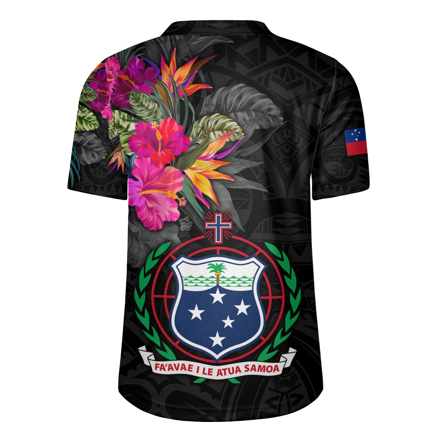 Samoa Rugby Jersey Custom Samoa Coat Of Arms With Tropical Flowers Special