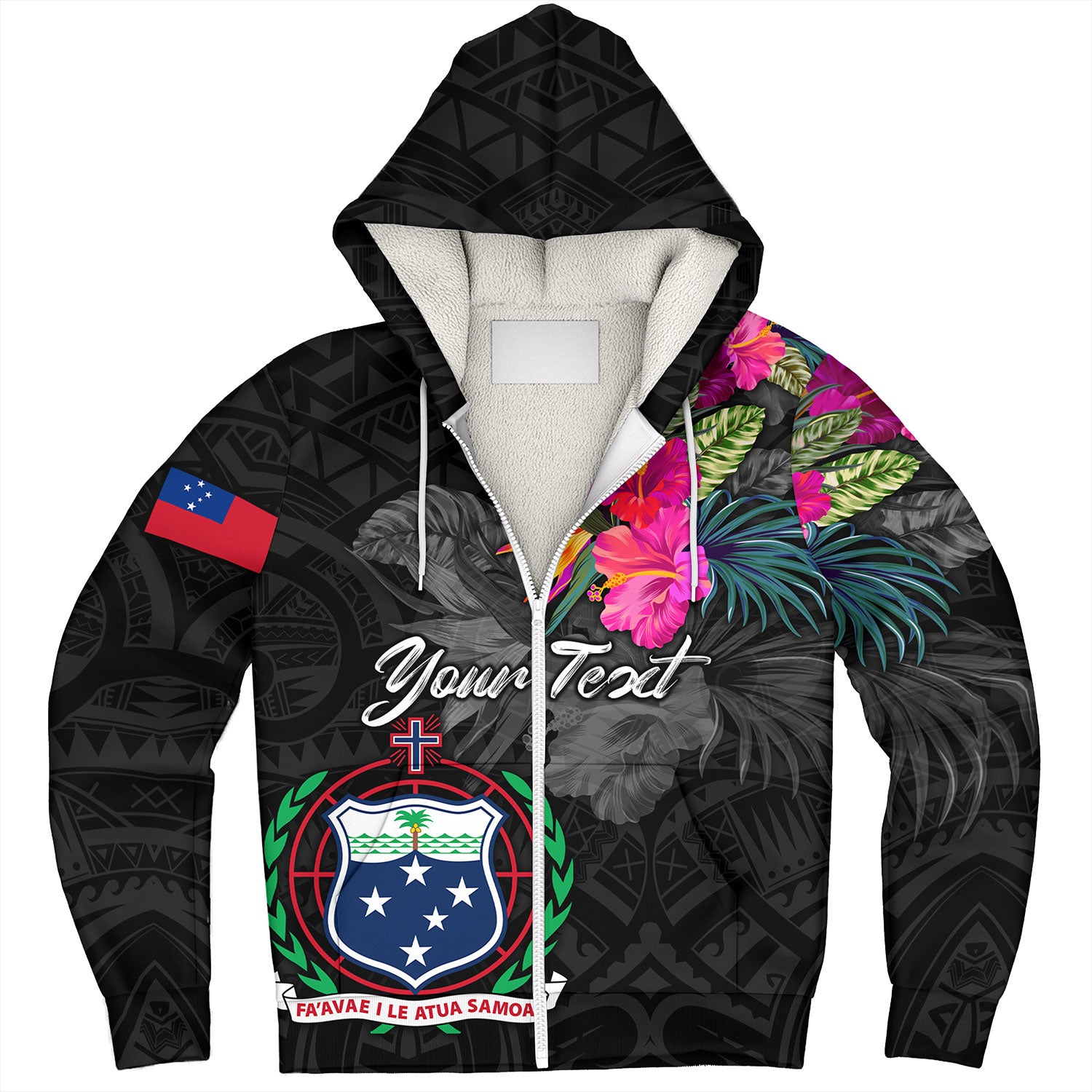 Samoa Sherpa Hoodie Custom Samoa Coat Of Arms With Tropical Flowers Special