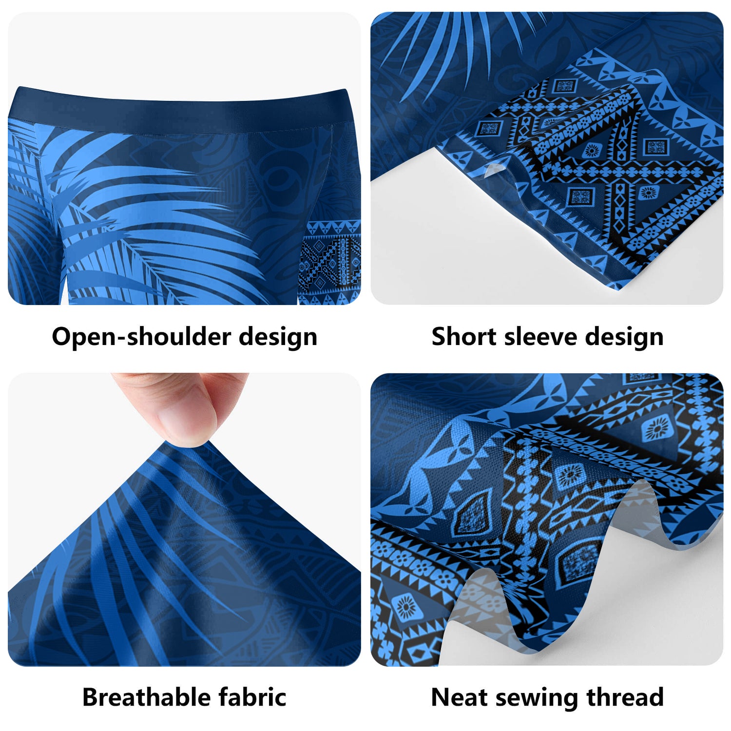 Samoa Short Sleeve Off The Shoulder Lady Dress Masi Dobby Fabric Leaves