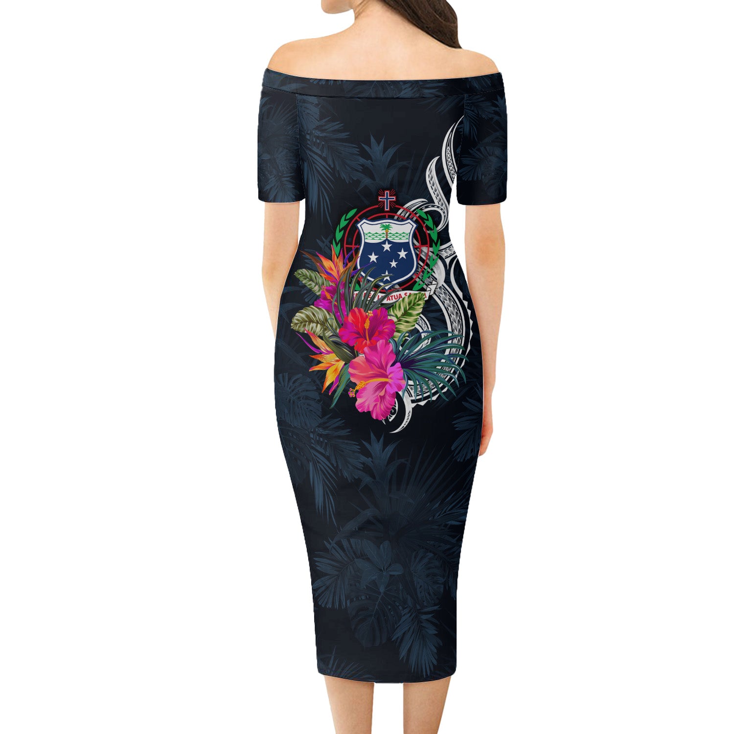 Samoa Short Sleeve Off The Shoulder Lady Dress Tropical Flower