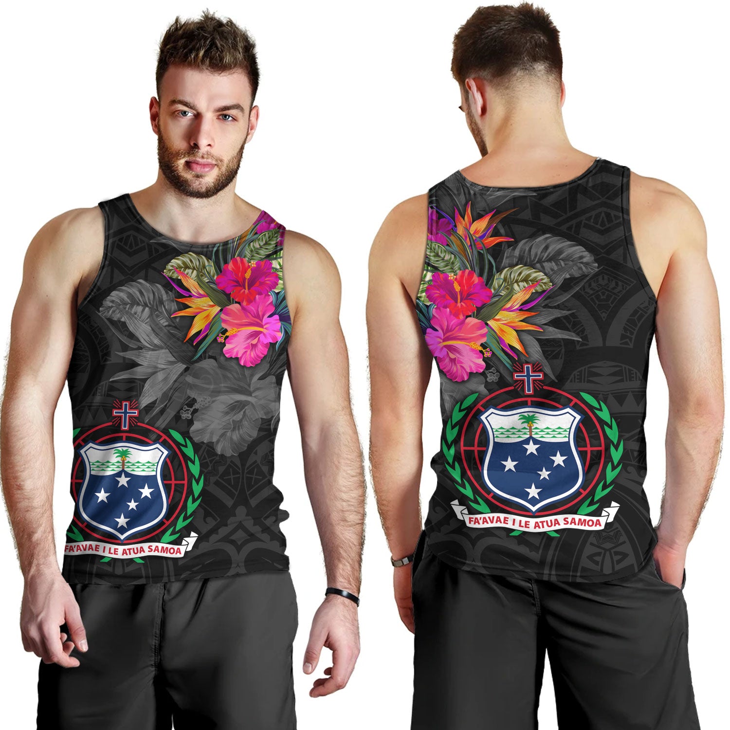 Samoa Tank Top Custom Samoa Coat Of Arms With Tropical Flowers Special