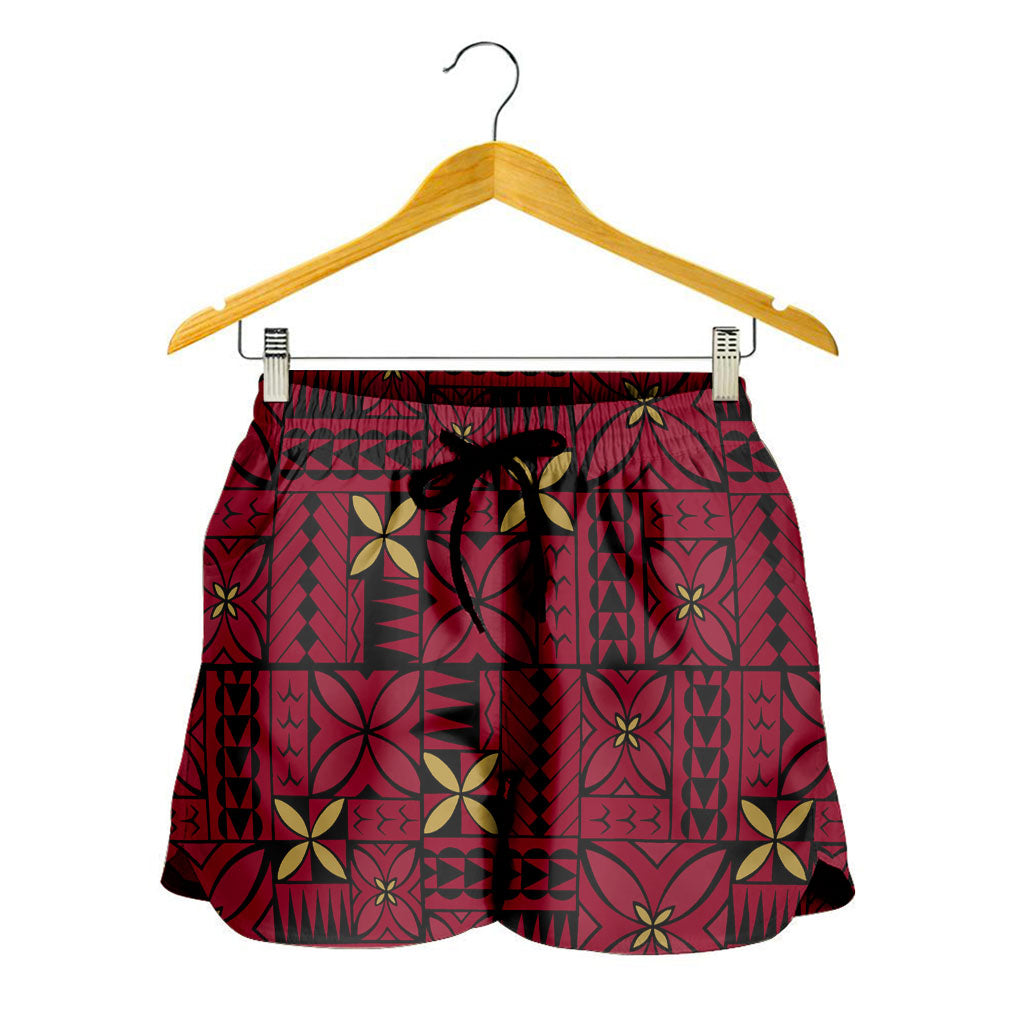 Samoa Women Shorts Siapo Design Tribal Pattern Red