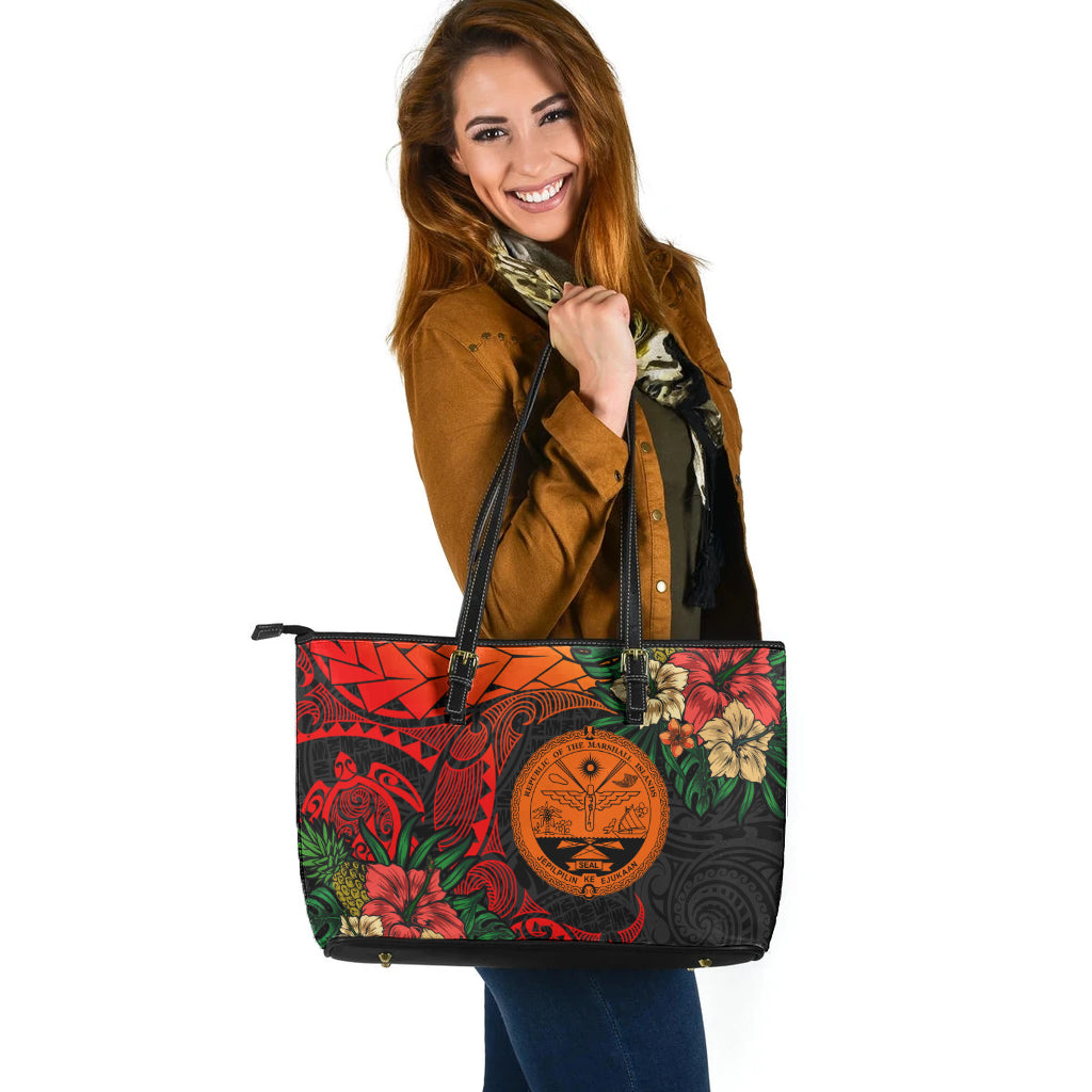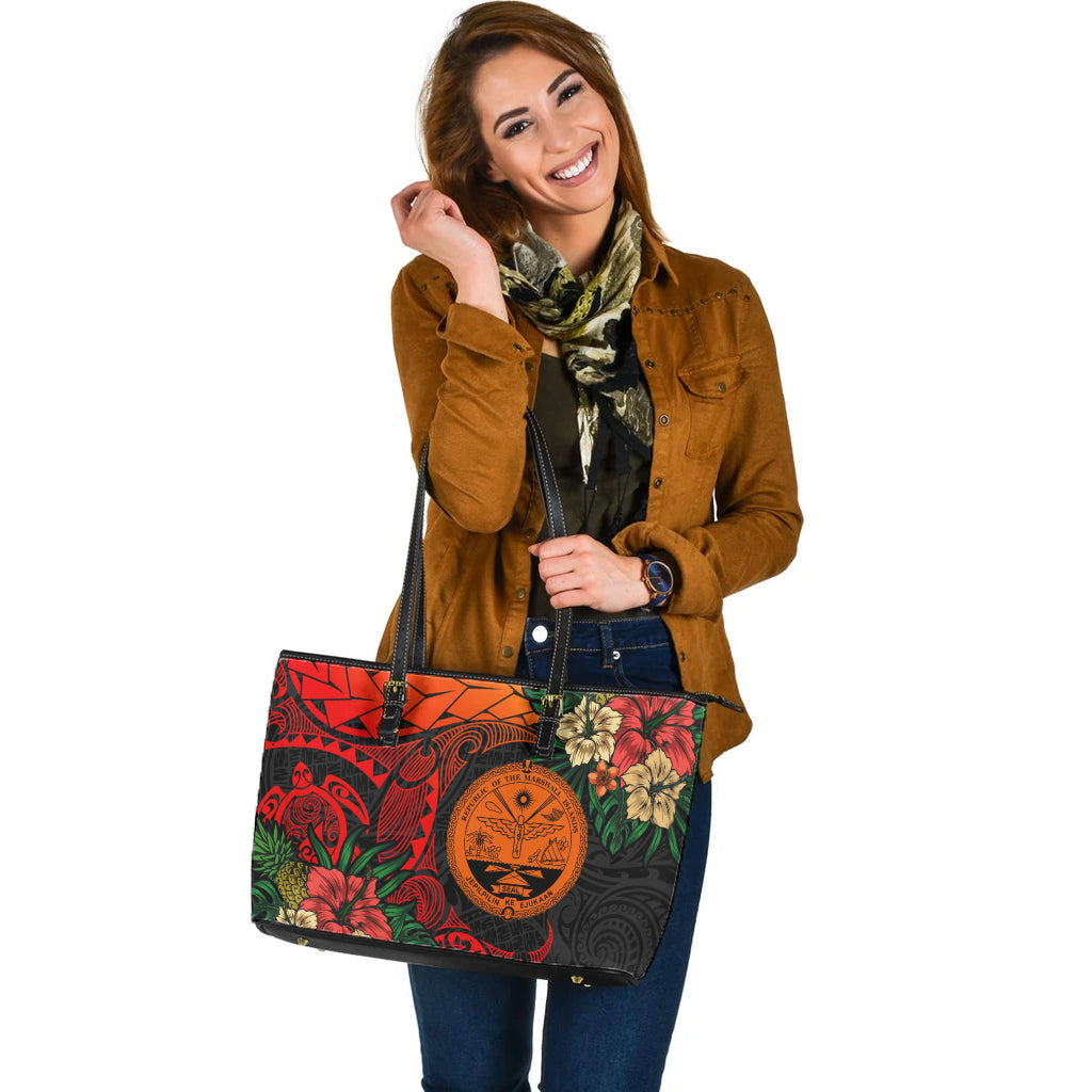Seal of the Marshall Islands Leather Tote Bag Polynesian Turtle Tropical