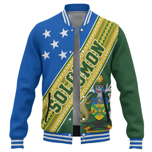 Solomon Islands Baseball Jacket Flag And Coat Of Arms
