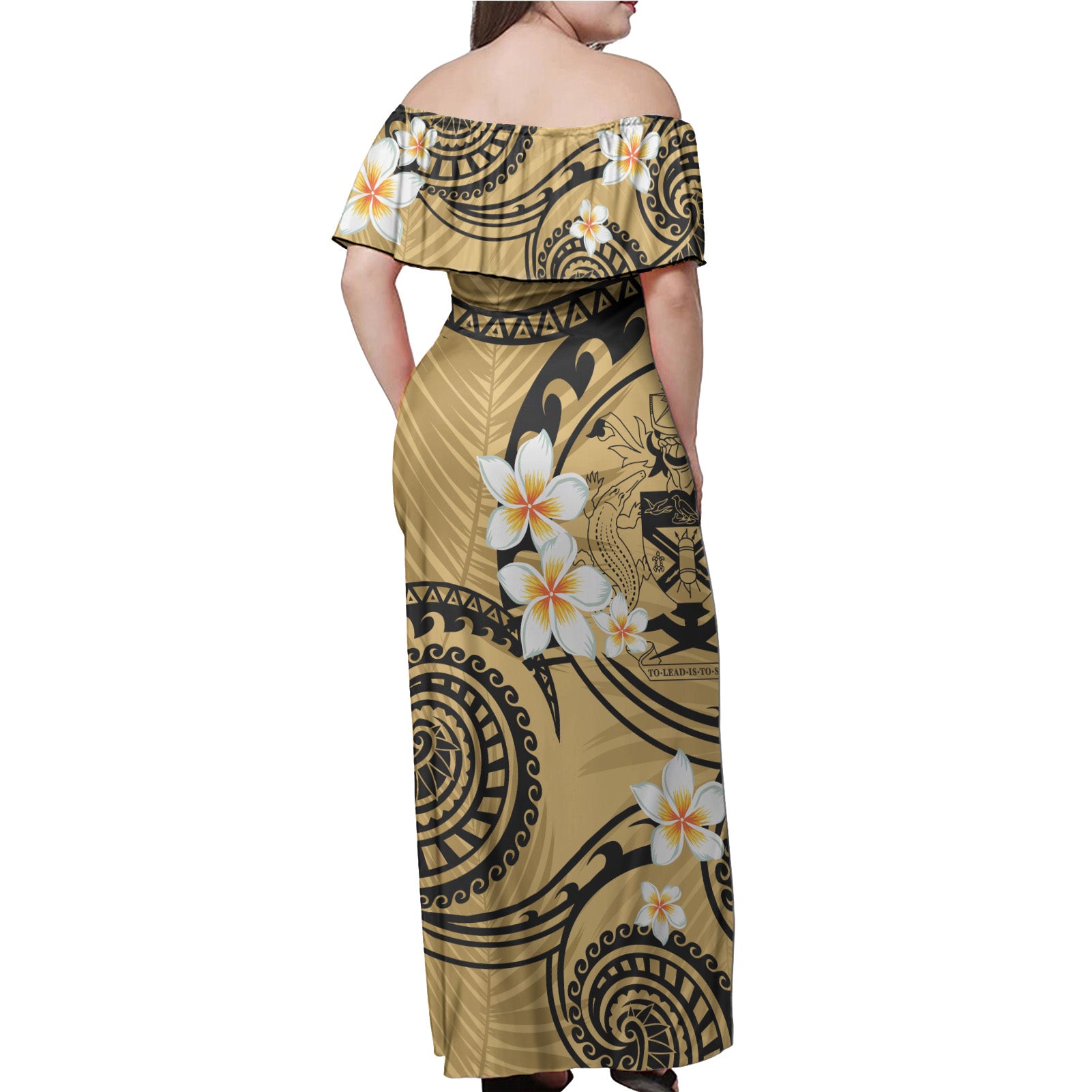 Solomon Islands Off Shoulder Long Dress Plumeria Flowers Tribal Motif Yellow Version