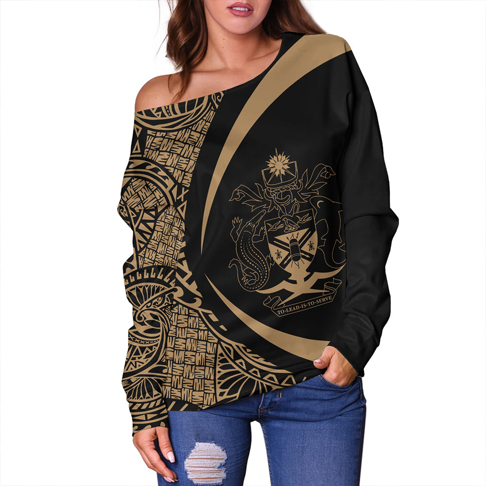 Solomon Islands Off Shoulder Sweatshirt Coat Of Arm Lauhala Gold Circle