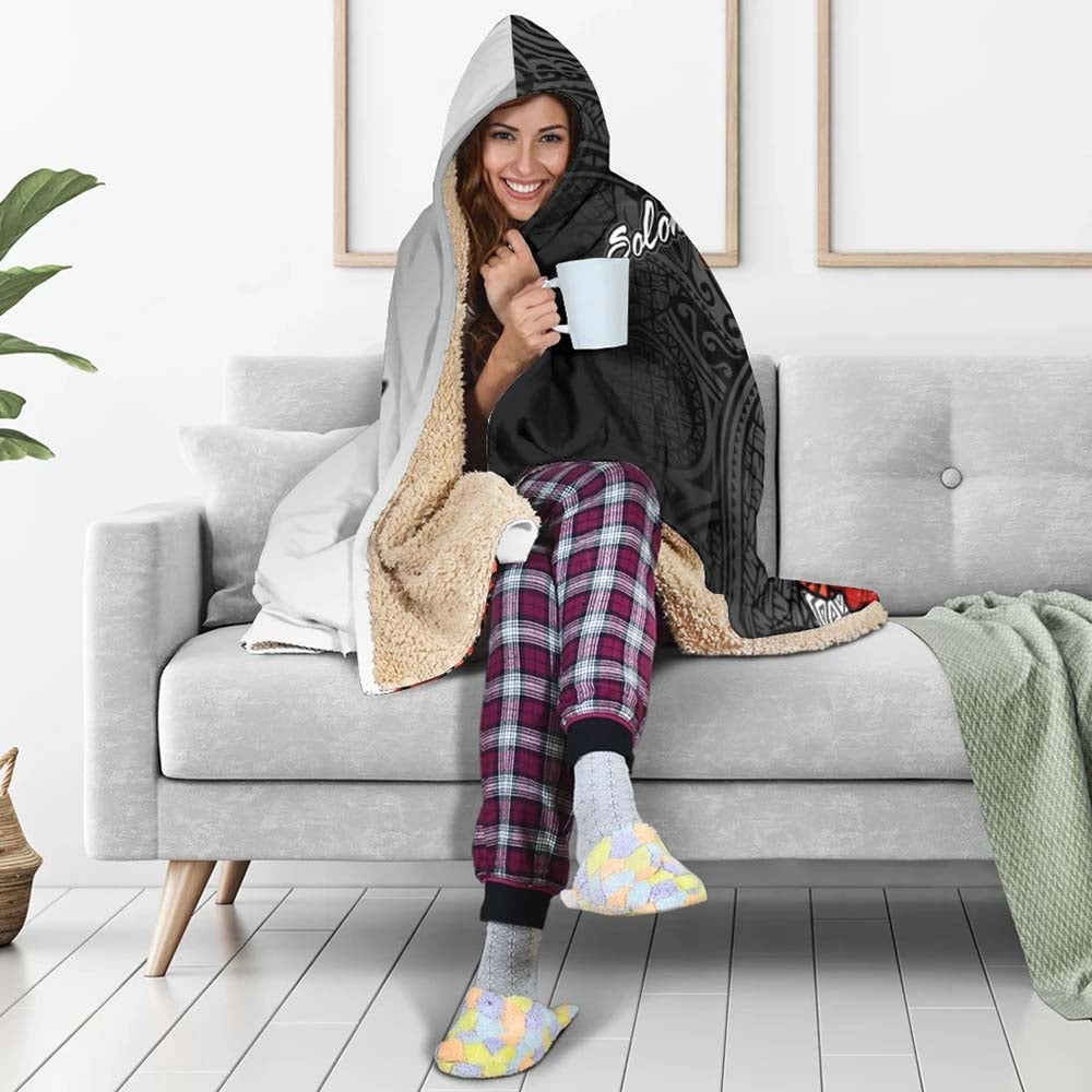 Solomon Islands Polynesian Hooded Blanket- Coat Of Arm With Hibiscus White