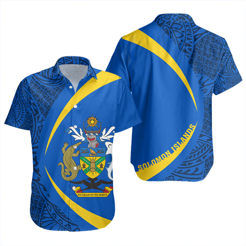Solomon Islands Short Sleeve Shirt Coat Of Arm Lauhala Circle