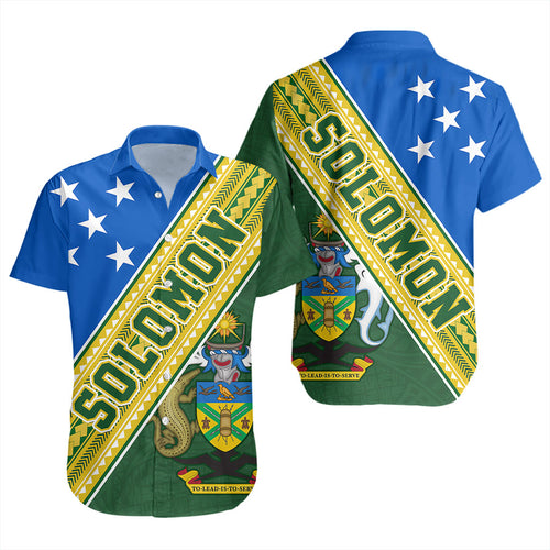 Solomon Islands Short Sleeve Shirt Flag And Coat Of Arms
