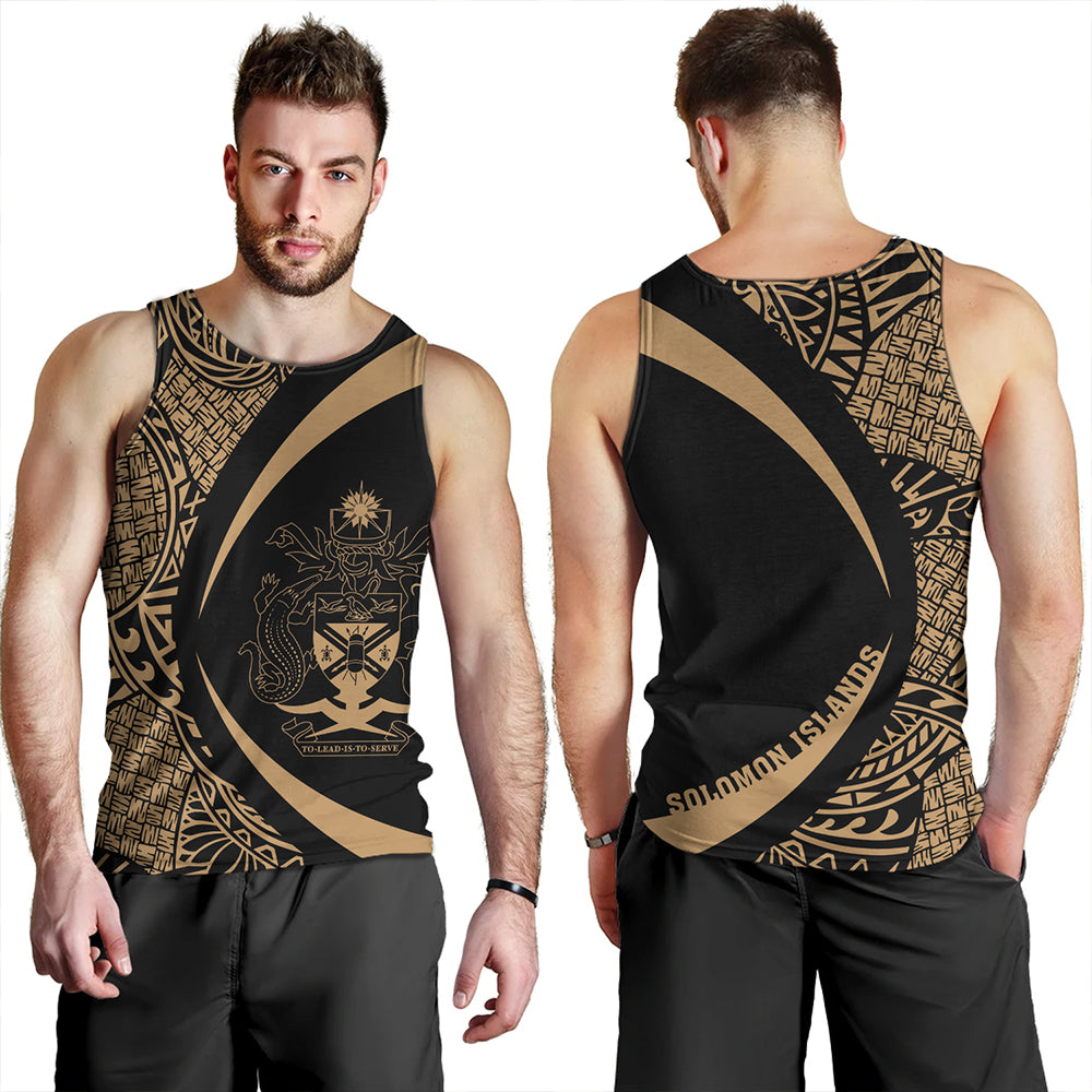 Solomon Islands Tank Top Coat Of Arm Lauhala Gold Circle